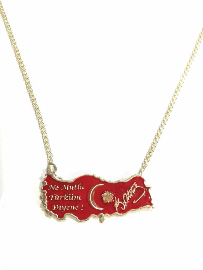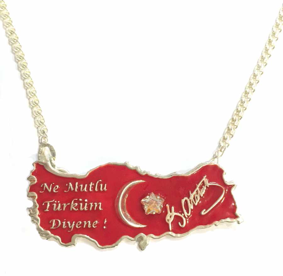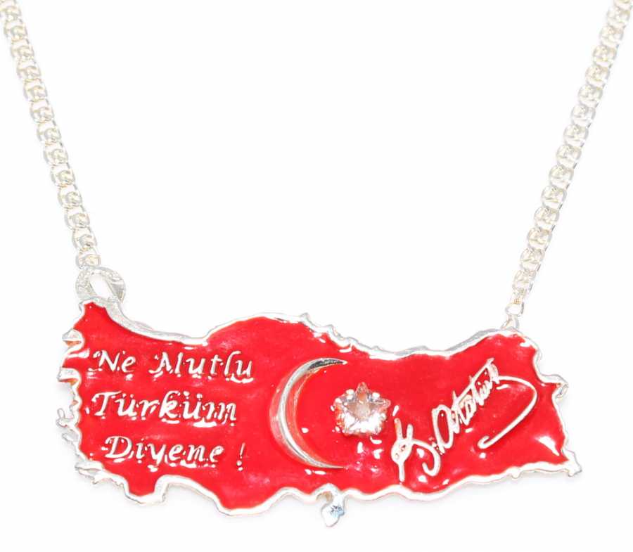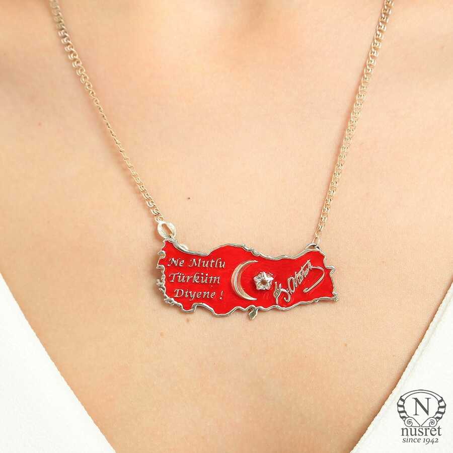 29 Ekim Özel Türkiye Haritası Cumhuriyet Gümüş Kolye