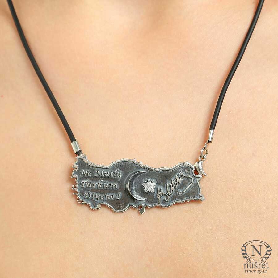 29 Ekim Özel Türkiye Haritası Cumhuriyet Gümüş Kolye, Siyah
