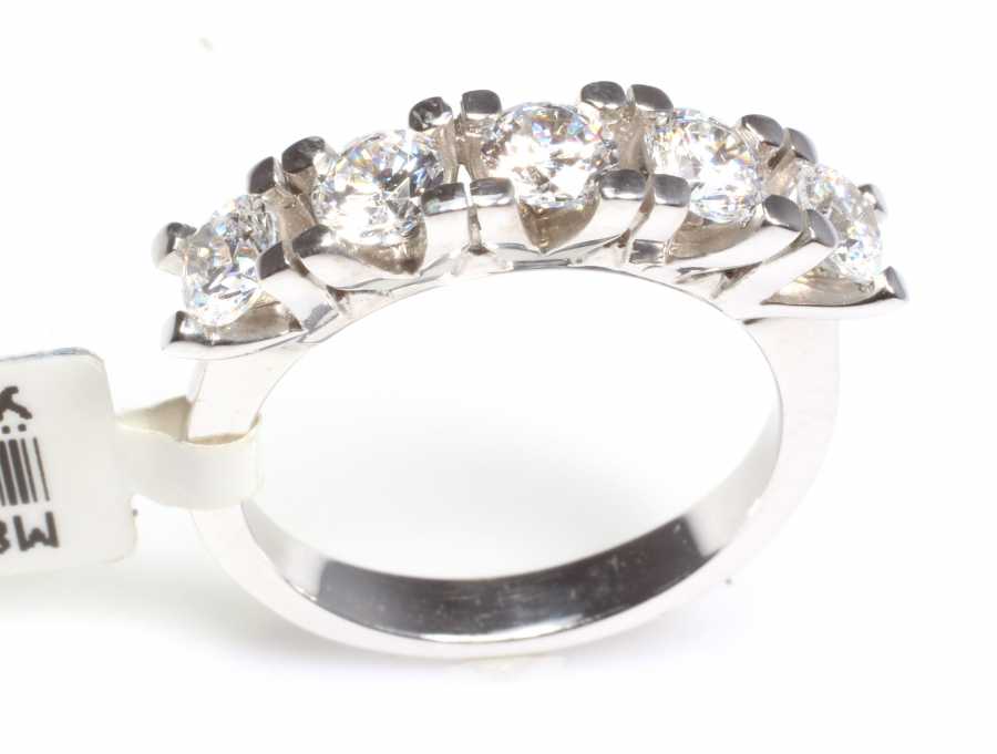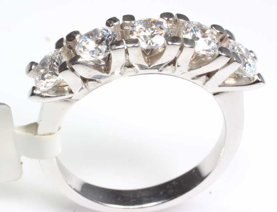 Beştaş yüzük 18 ayar altın madeninden üretilmiştir. Yüzük üzerinde 5 adet 1,25 karat ağırlığında I renk VS berraklığında beyaz pırlanta taş mevcuttur. Beş taş yüzük 5,5 gram ağırlığındadır. Sertifika için bizimle iletişime geçebilirsiniz.
