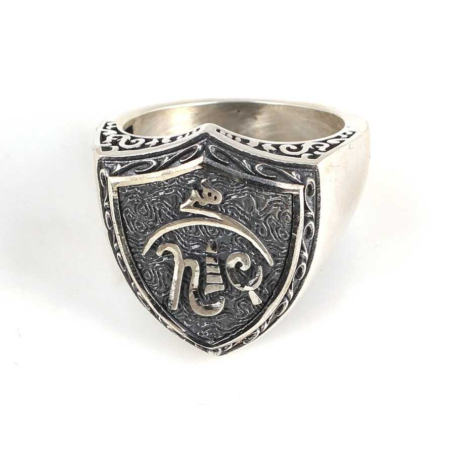 925 gümüşten üretilmiş bir erkek yüzüğüdür. Üzerinde 21 x 23 mm boyutlarındadır. Erkek yüzüğü taşsızdır ve yüzük üzerinde "hiç" yazılıdır. Kalem kullanılarak el işi desenlerle süslenmiştir. Yüzük 13,86 gram ağırlığındadır.