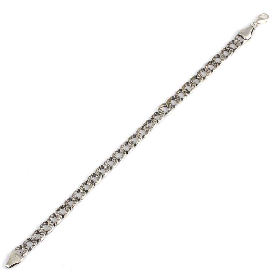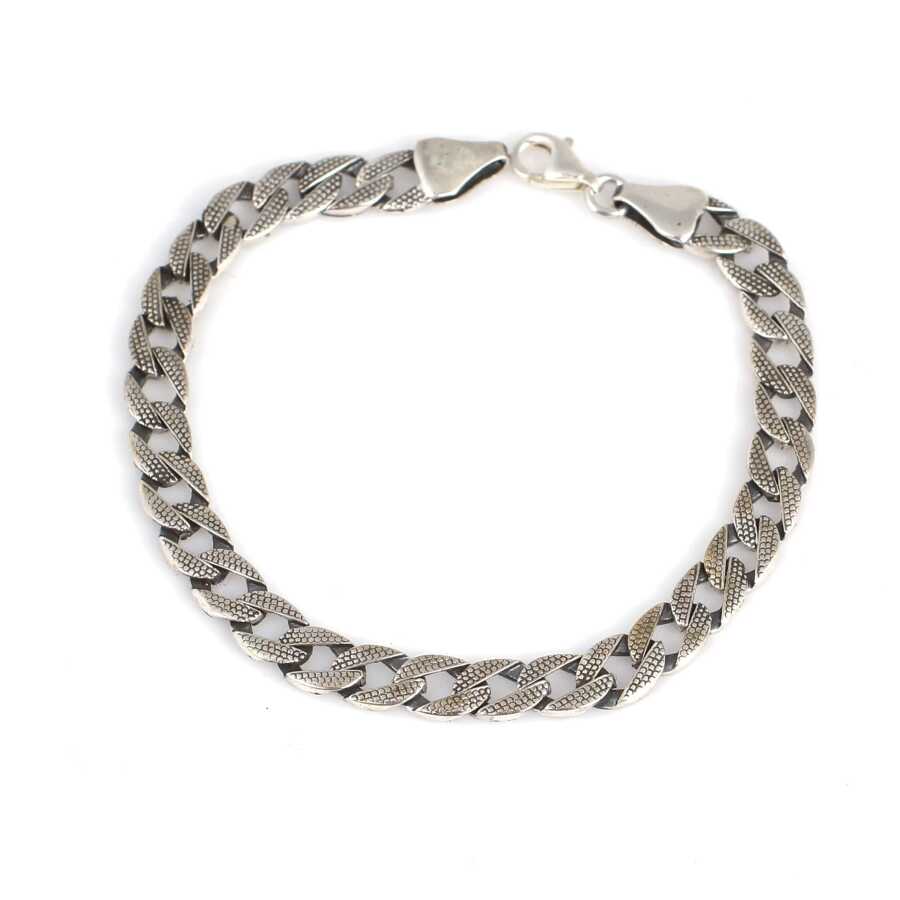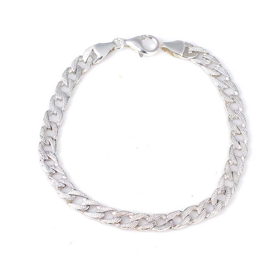 925 ayar gümüştür. 0,6 x 0,8 mm ebadında halkalardan oluşan 19 cm boyunda zincir bilekliktir. Gramı: 8,51 gr