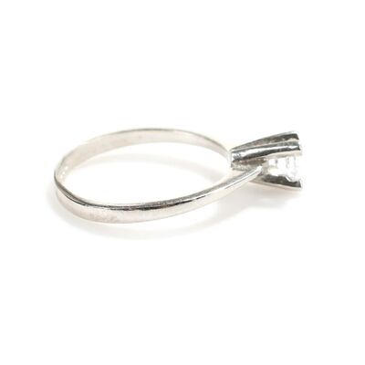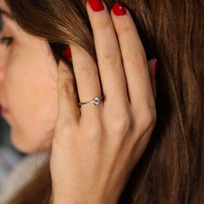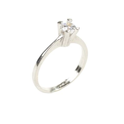 Gümüş yüzük 925 ayar gümüşten yapılmıştır. Tektaş şeklinde gümüş yüzüğün orta taşı 0,6 crt görünümündedir. Yüzük klasik dört tırnaklıdır. Yüzük zirkon taşlıdır. Resimdeki yüzük 14 ölçüdür, ancak tüm ölçüler özel olarak yapılabilmektedir. Ağırlığı 1,3 gramdır.