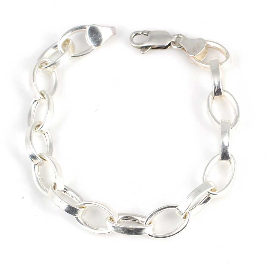 Gelince Haber Ver Bileklik 925 ayar gümüşten imal edilmiştir. Zincir bileklik 20 cm uzunluğundadır. Bileklik 0,9 enindedir. Gümüş oval parça 0,9 cm'ye 1,4 cm boyutlarındadır. Bileklik taşsızdır. Zincir bileklik gümüş renk rodajlıdır. Ağırlığı 12,7 gramdır.