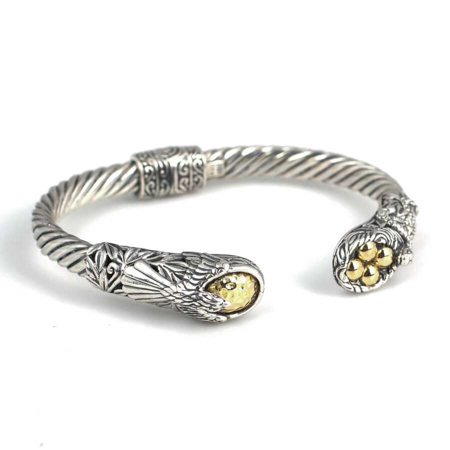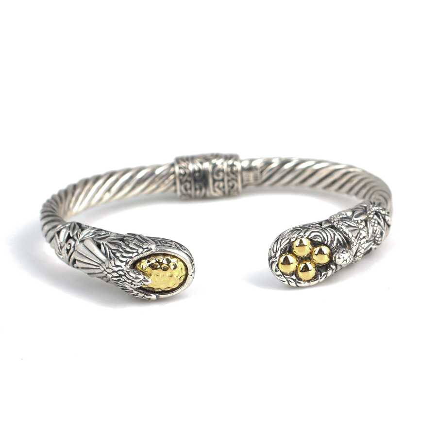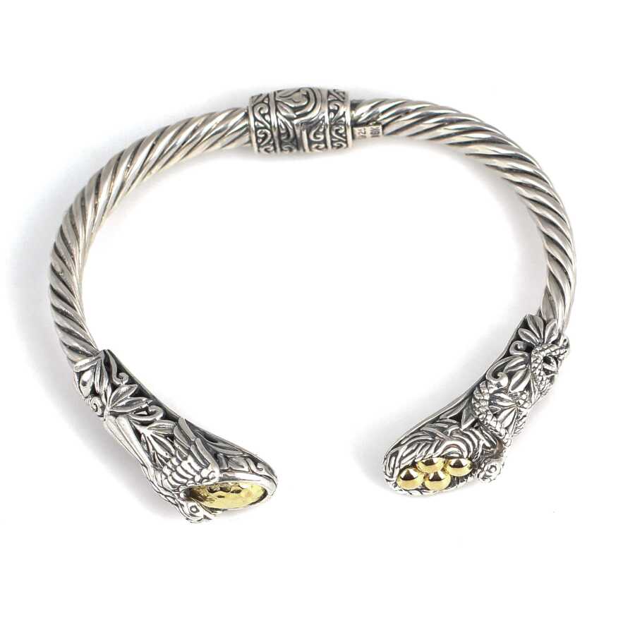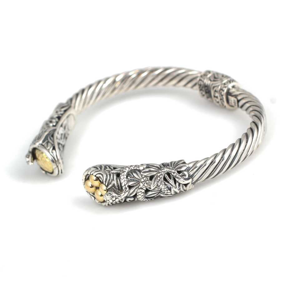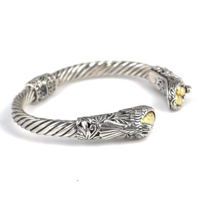 925 Ayar Gümüş 18 Ayar Altın Parçalı Burgu Kollu Bilezik