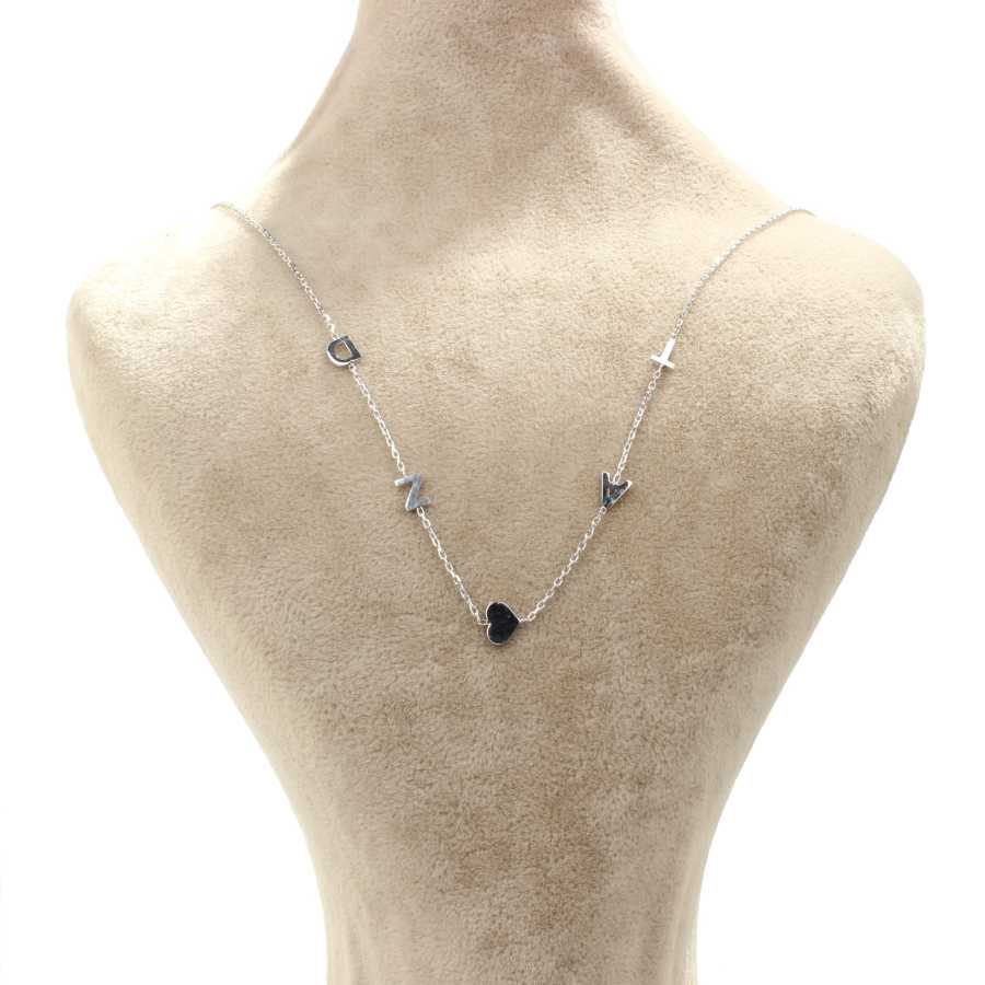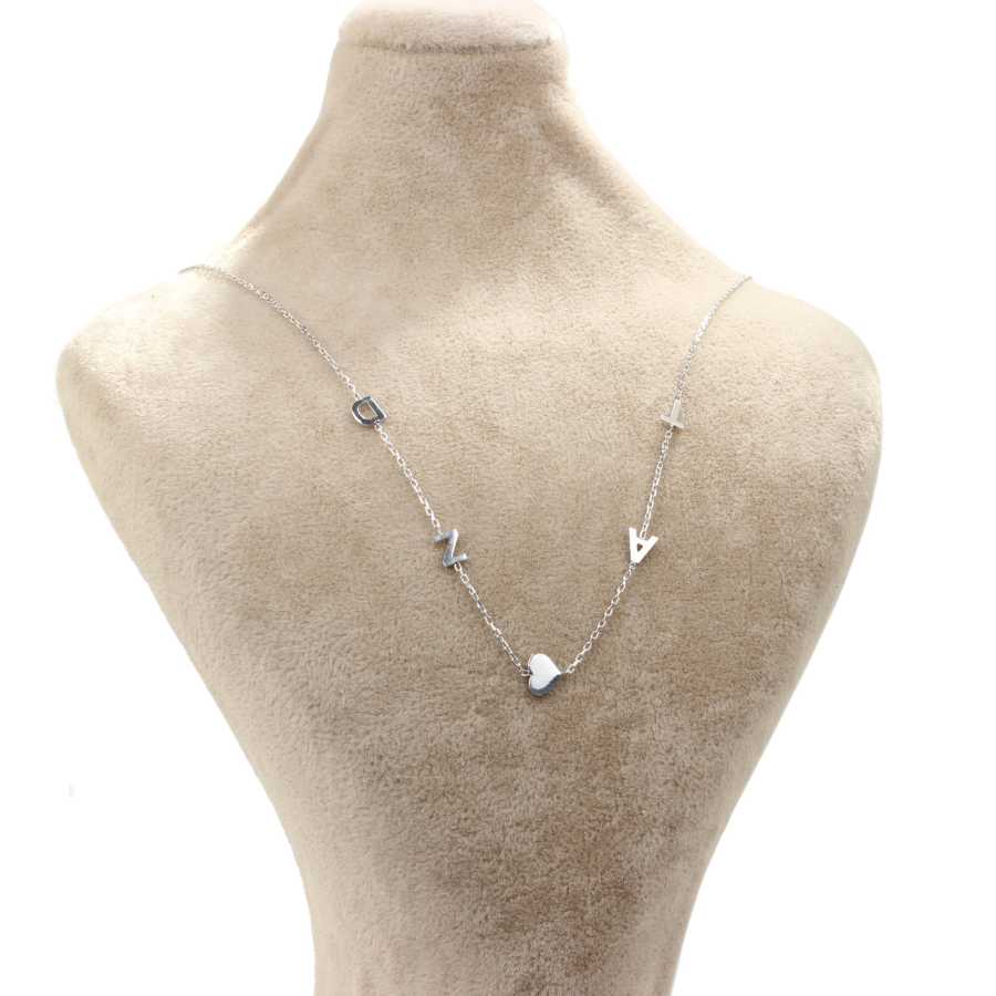 925 Ayar Gümüş 4 Harf ve Kalp Kolye