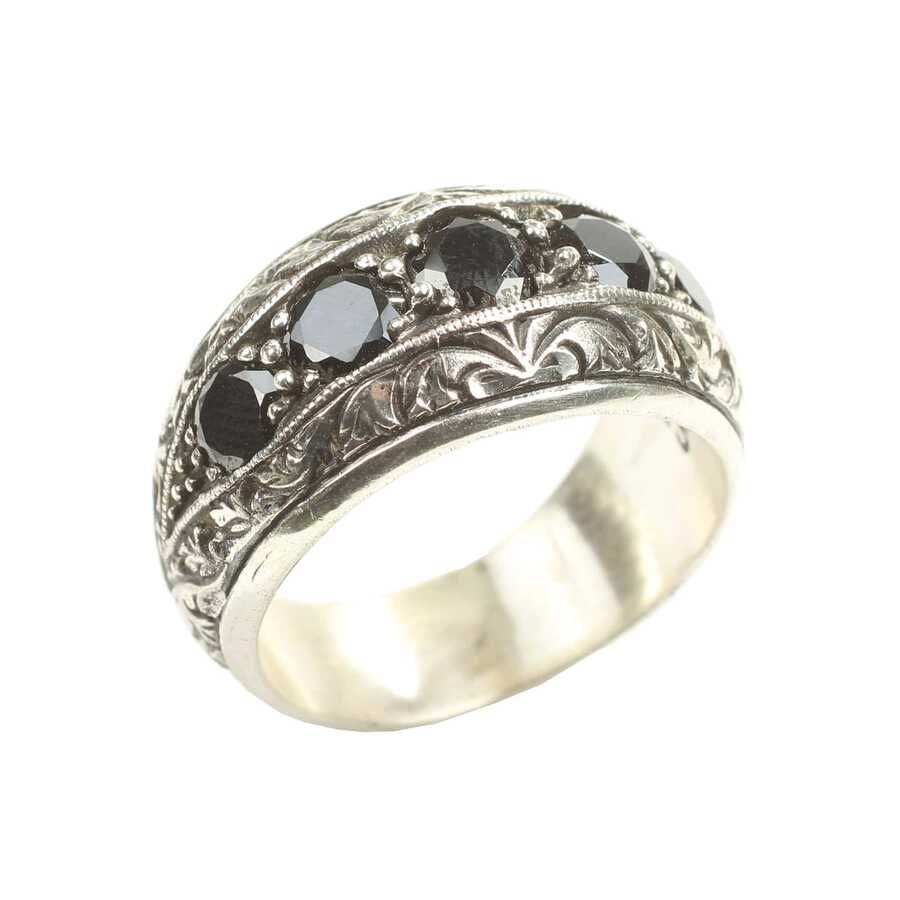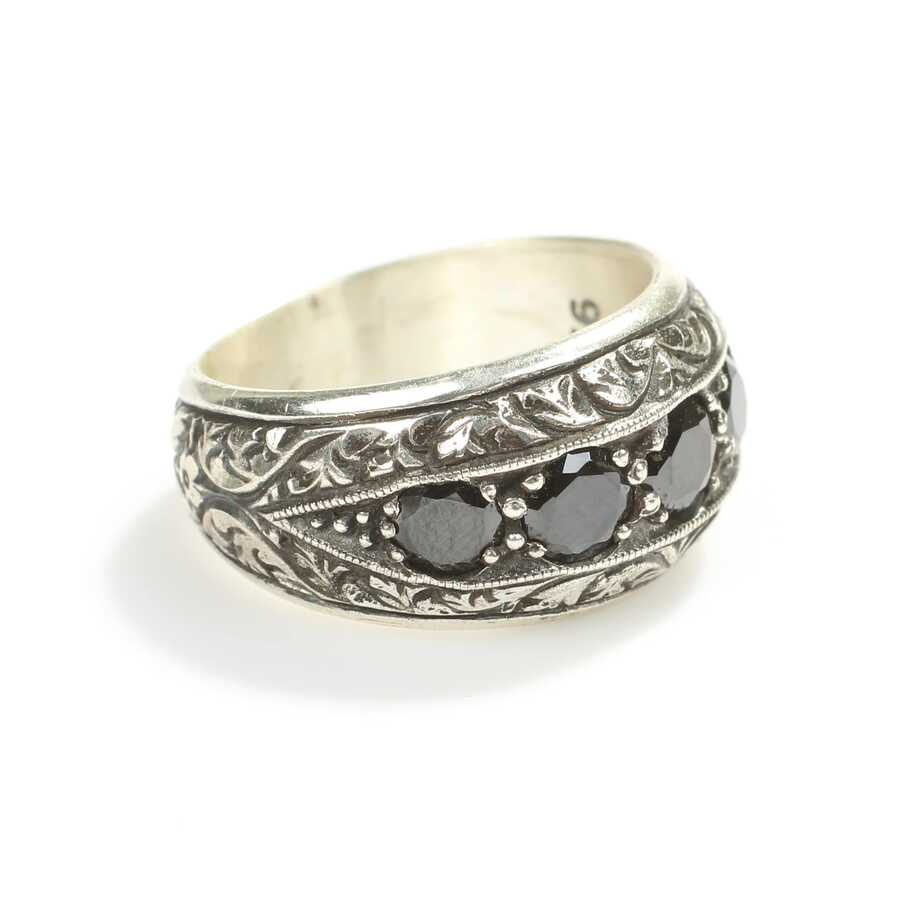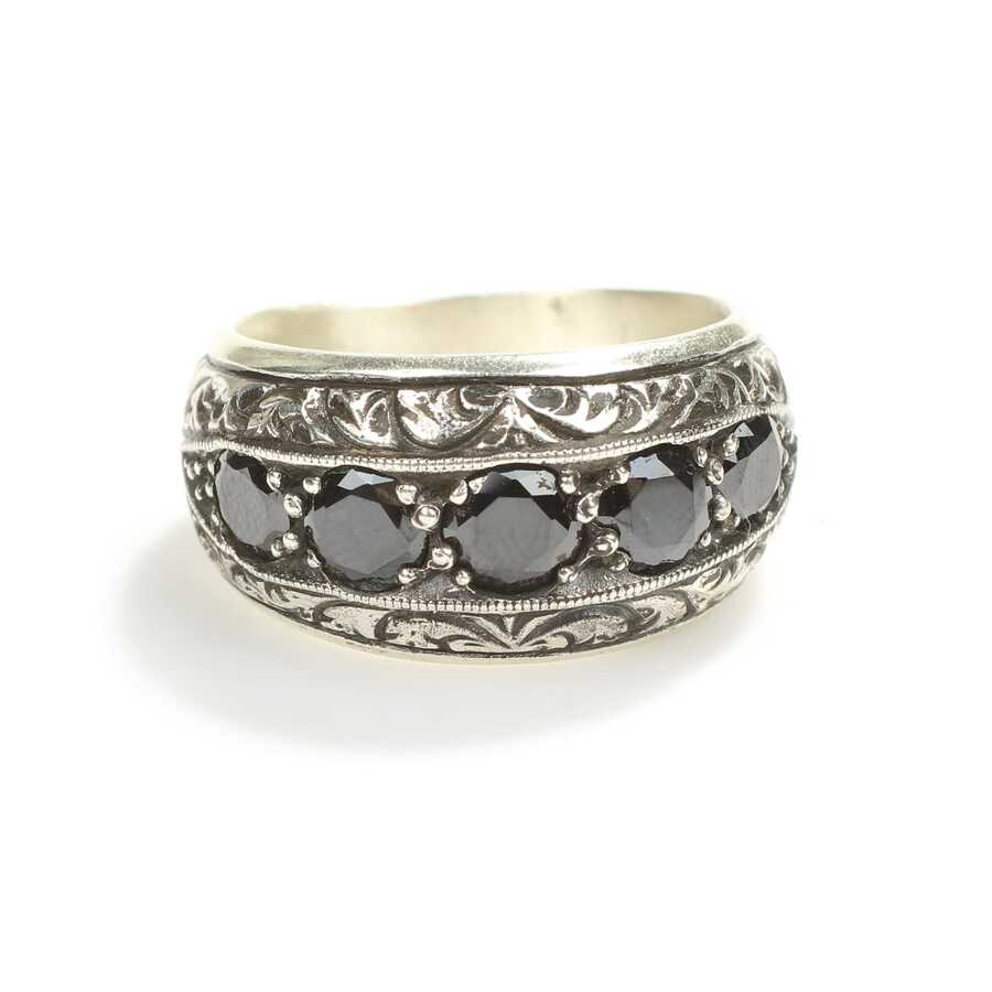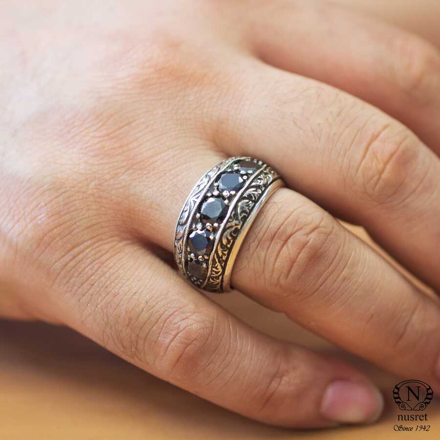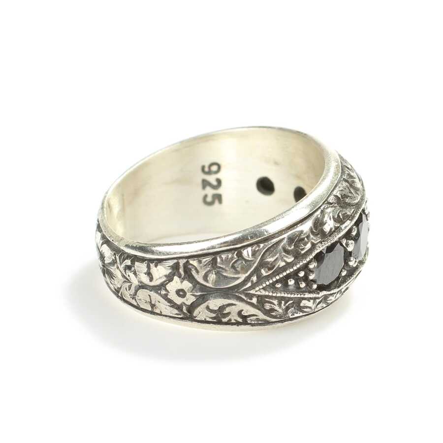 Yüzük 925 ayar gümüşten üretilmiştir. Yüzüğün üzerinde el kalemi atılarak tasarlanmıştır. Taşlı yüzük 2,7 cm'ye 1,4 cm boyutlarındadır. Resimdeki yüzük 29 ölçüdür, ancak tüm ölçüler özel olarak yapılabilmektedir. Yüzük oniks taşlıdır. Ağırlığı 18,24 gramdır.