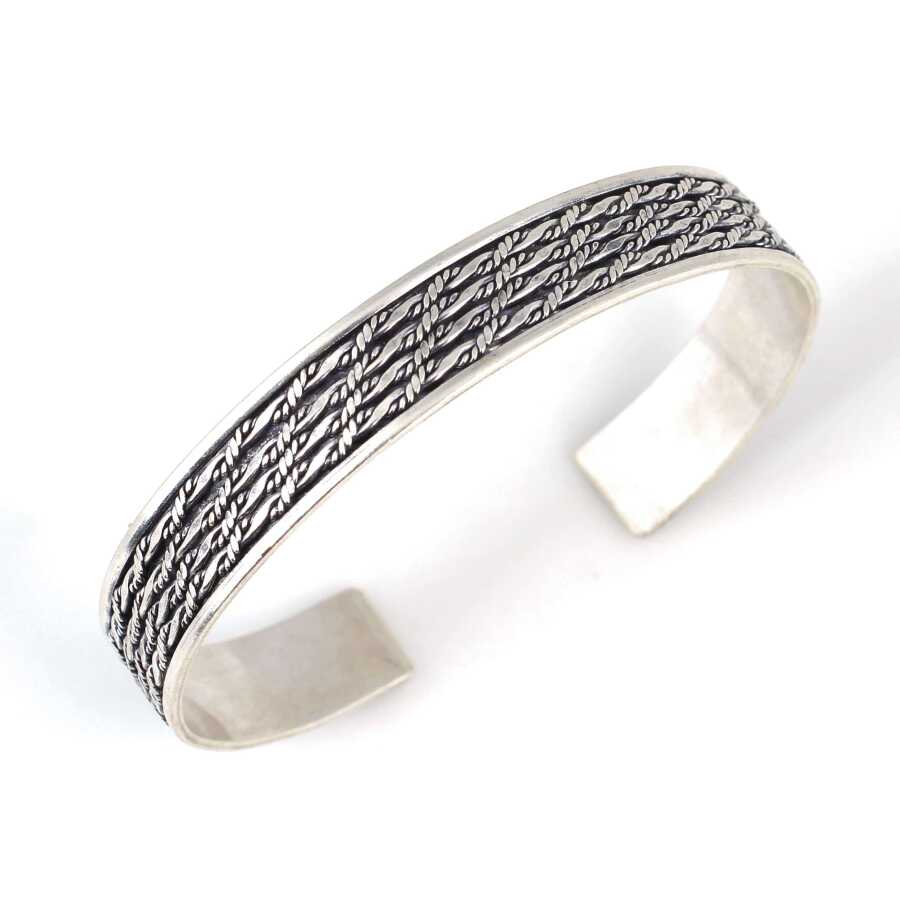 Bilezik 925 ayar gümüşten imal edilmiştir. El işi bilezik 6 cm çapındadır. Gümüş bilezik 1,1 cm kalınlığındadır. Ağırlığı 19,53 gramdır.
