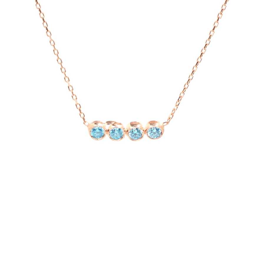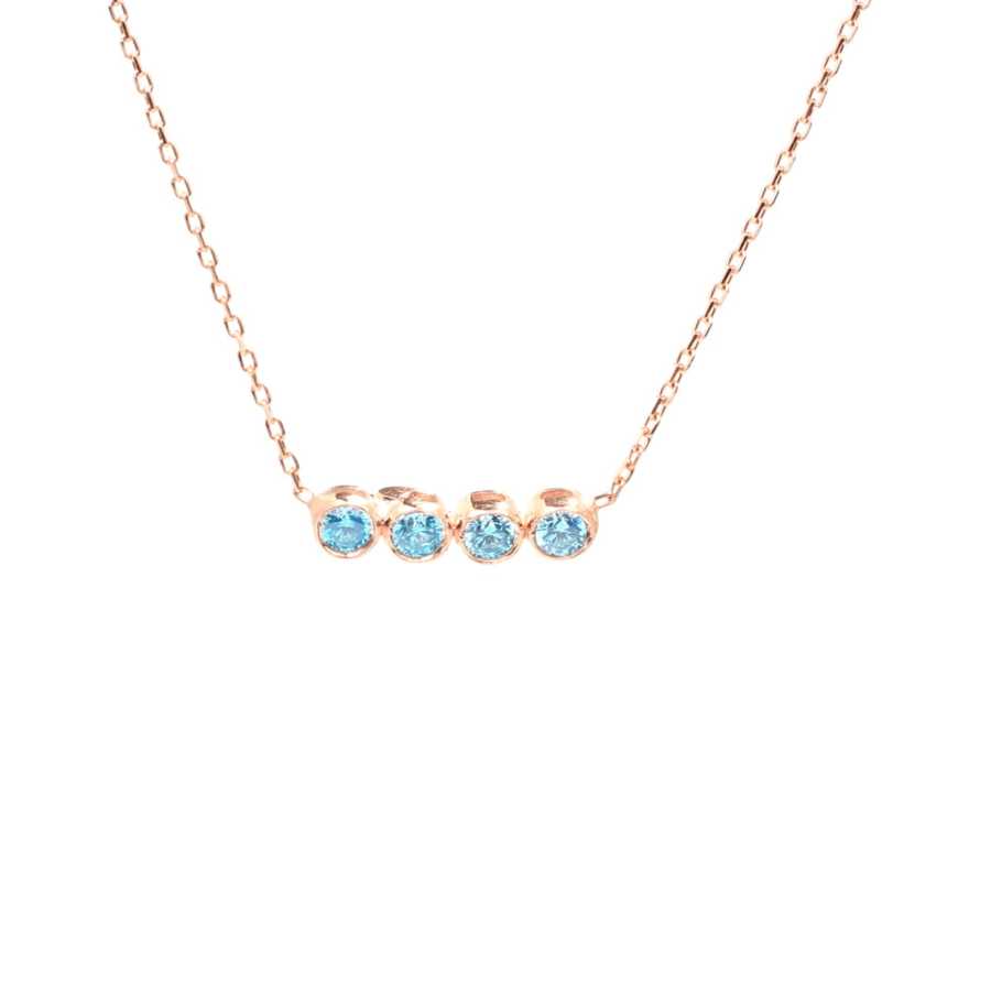 925 Ayar Gümüş 4 Sıra Suyolu Kolye, Akuamarin Taşlı