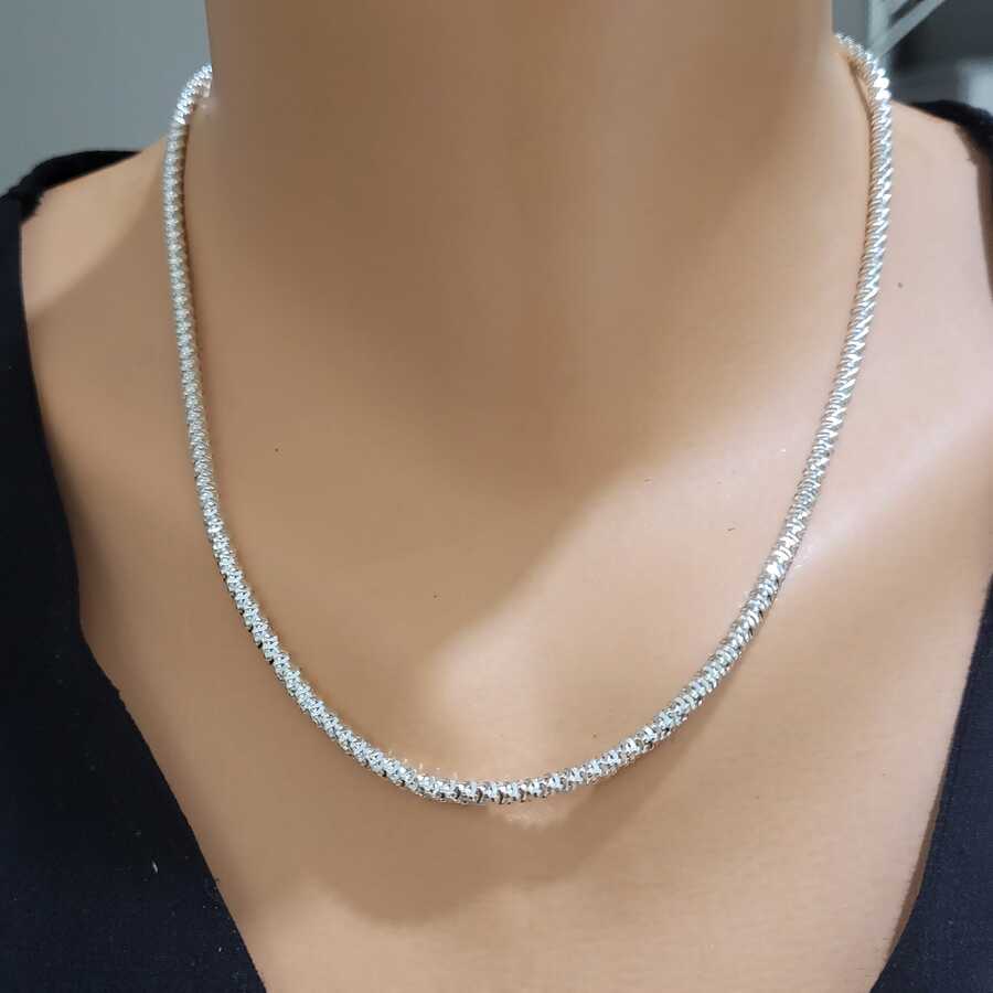 Gümüş kolye 925 ayar gümüşten yapılmıştır. İtalyan kalemli zincir kolye 0,4 cm kalınlığında ve 45 cm uzunluğundadır. Kolye taşsızdır. Ağırlığı 13,72 gramdır.