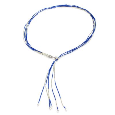 925 Ayar Gümüş 5 Sıra Lapis Taşlı Asansörlü Kolye