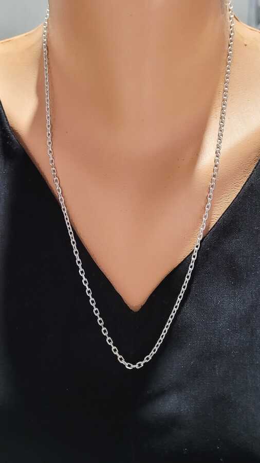 Gümüş zincir 925 ayar gümüşten üretilmiştir. 2,5 mm kalınlığında forse zincir kolye 55 cm uzunluğundadır. Kolye taşsızdır. Ağırlığı 9,5 gramdır.