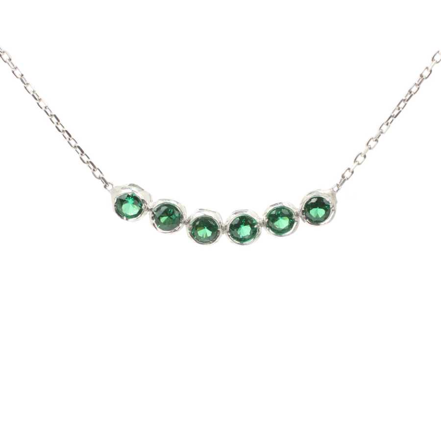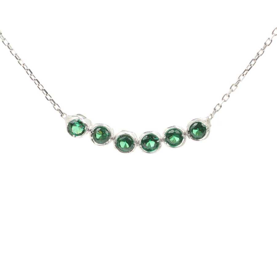 925 Ayar Gümüş 6 Sıra Suyolu Kolye, Zümrüt Taşlı