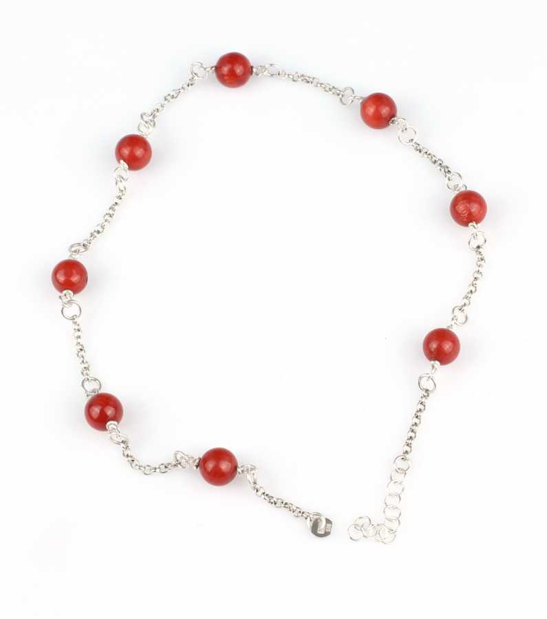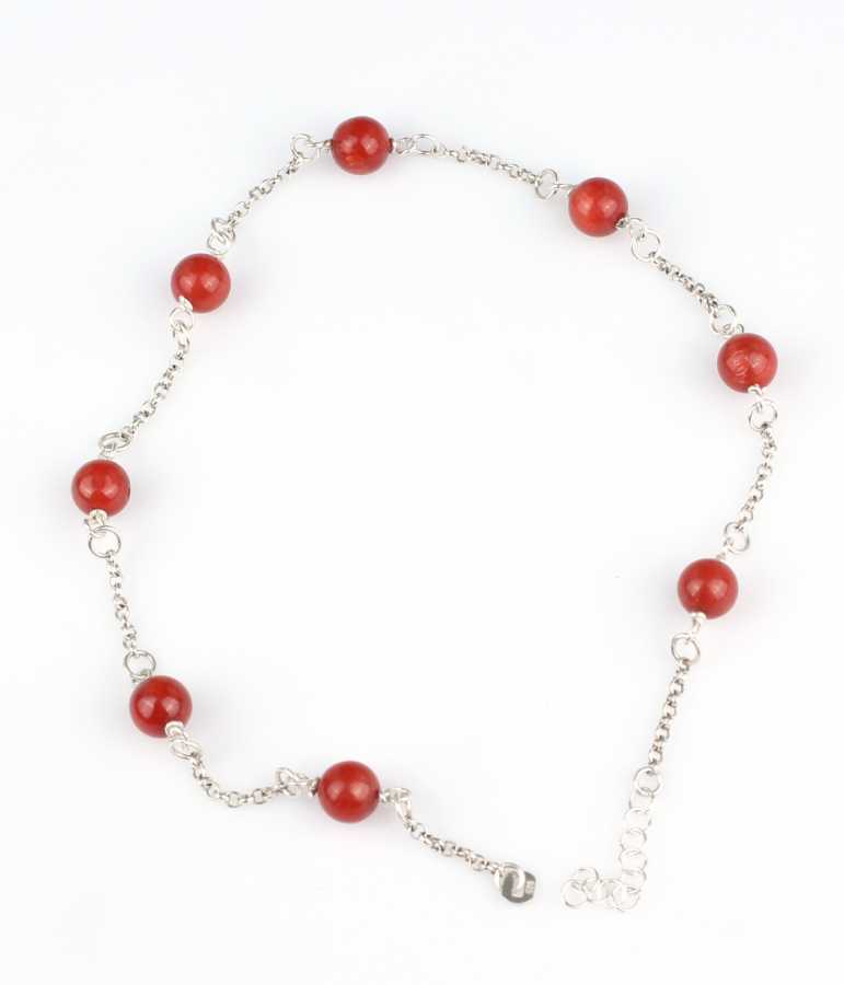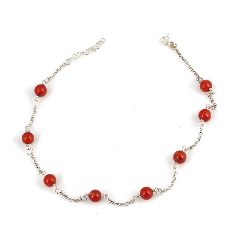 925 Ayar Gümüş 8 Adet Mercan Taşlı Halhal Bileklik