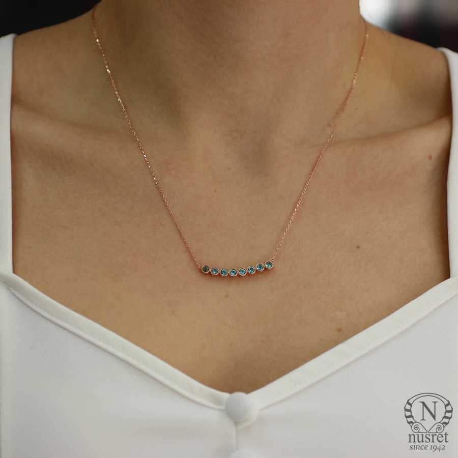 925 Ayar Gümüş 8 Sıra Suyolu Kolye, Akuamarin Taşlı