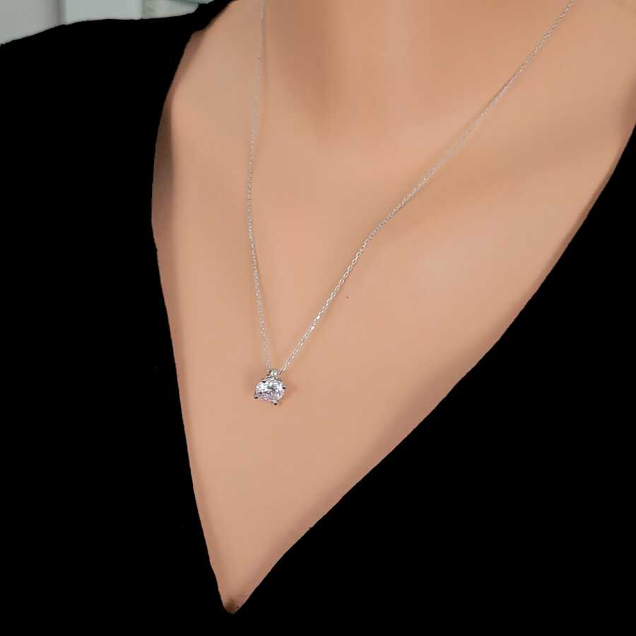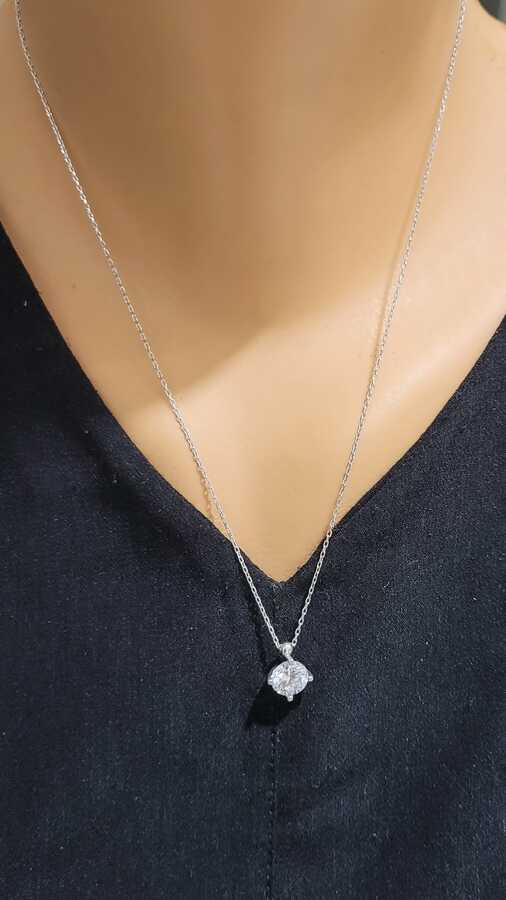 925 Ayar Gümüş 9 Mm Zirkon Tektaş Kolye