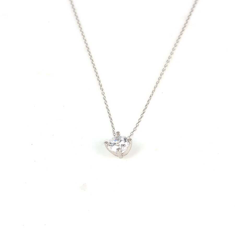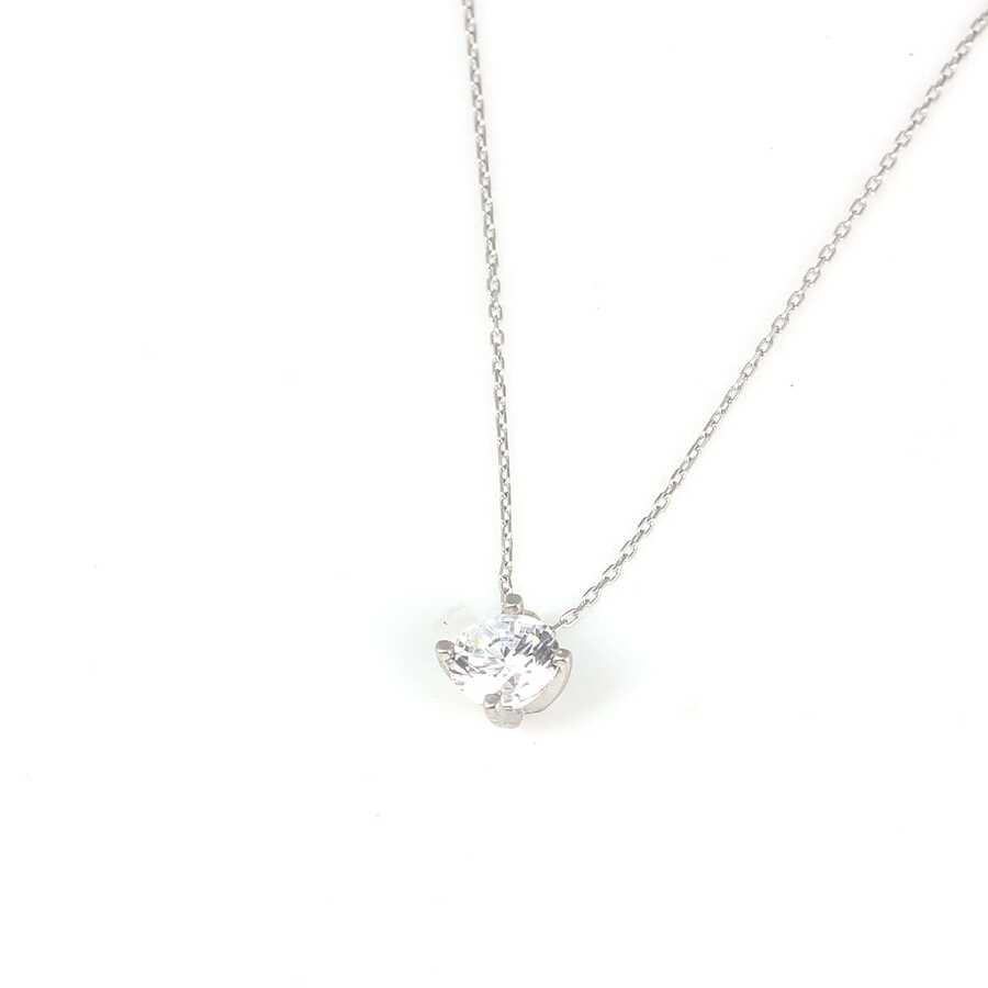 Gümüş kolye 925 ayar gümüşten yapılmıştır. Tektaş kolye 0,9 cm boyutlarındadır. Zinciri 45 cm uzunluğundadır. Kolye zirkon taşlıdır. Ağırlığı 2,33 gramdır.