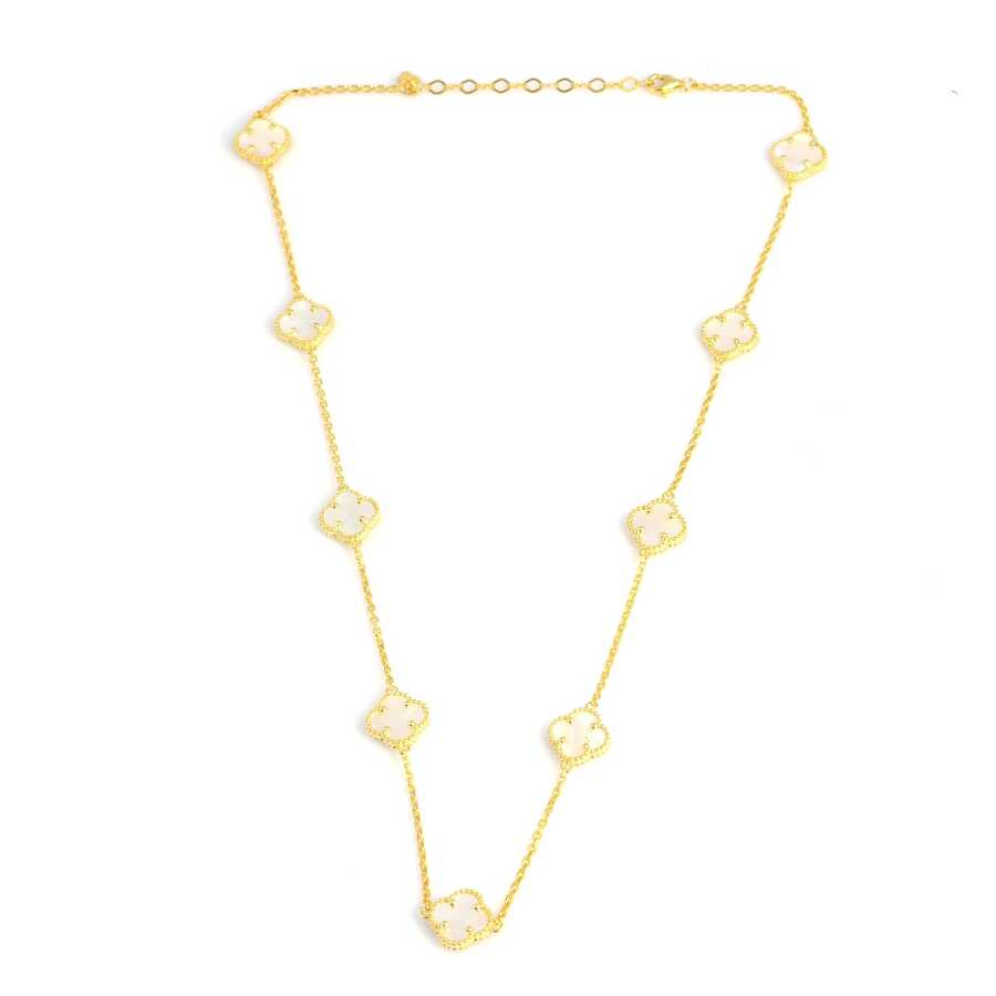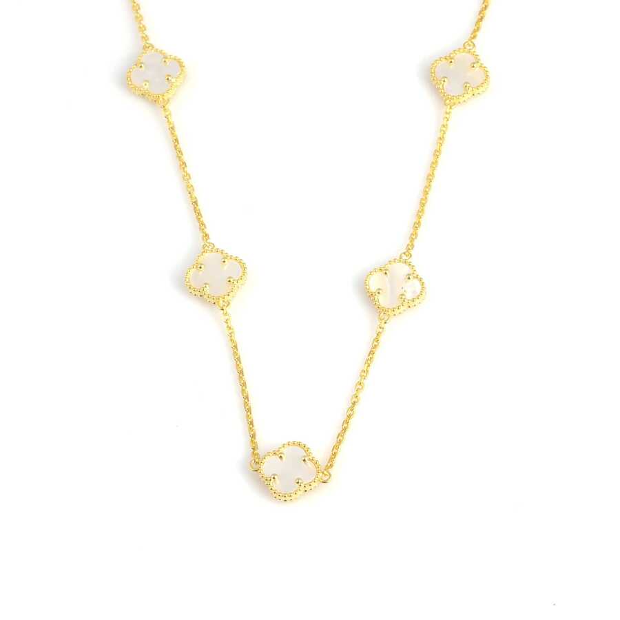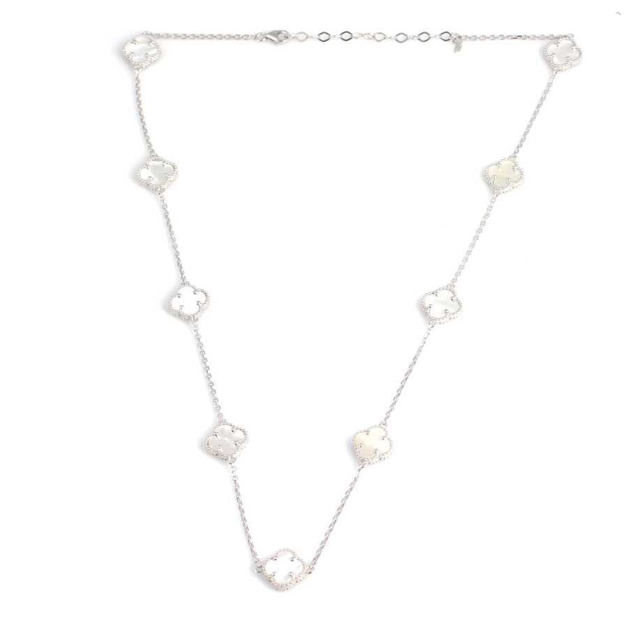 925 Ayar Gümüş 9'Lu Yonca Model Sedef Taşlı Kolye