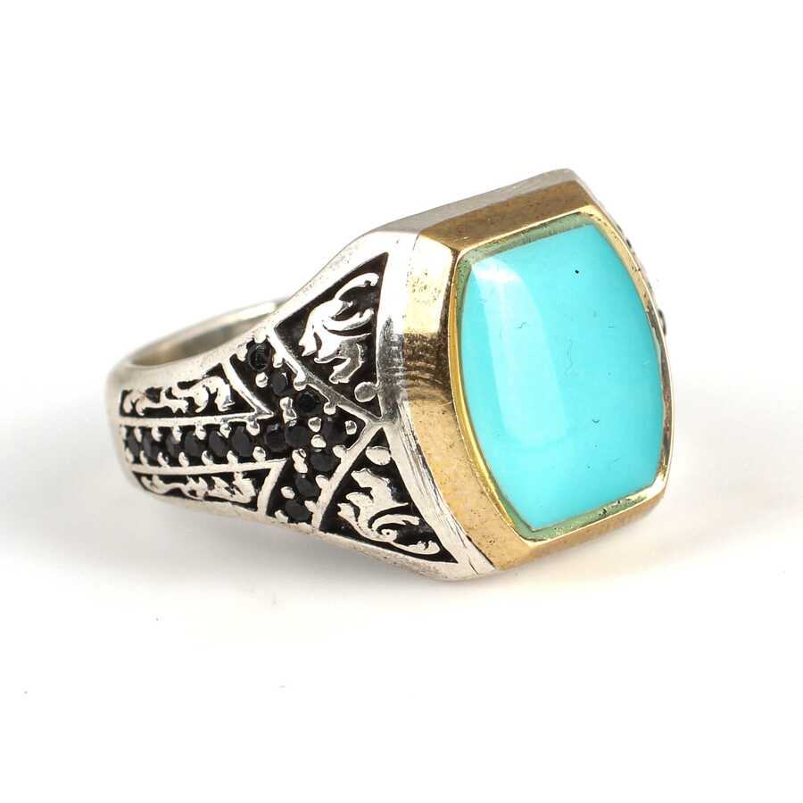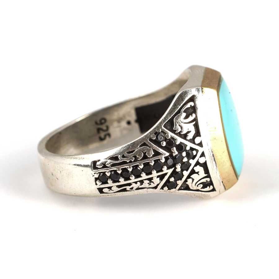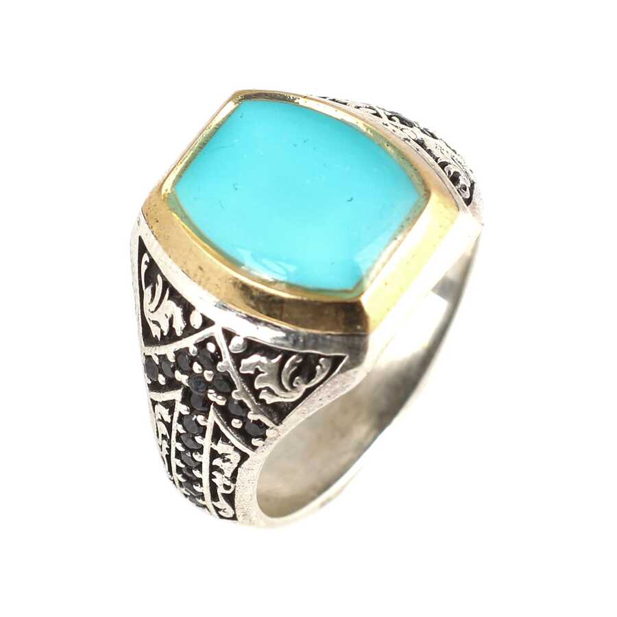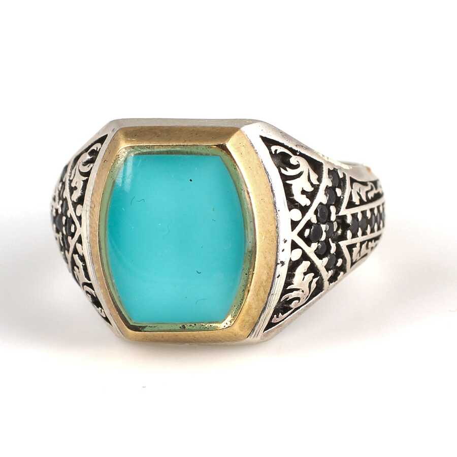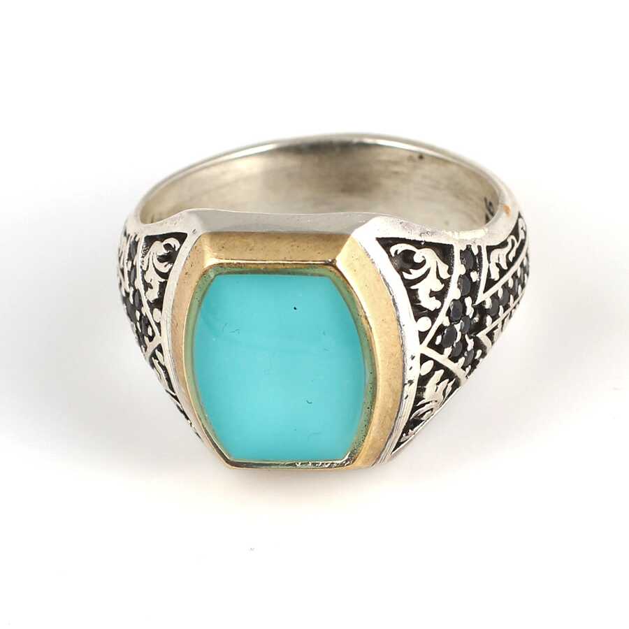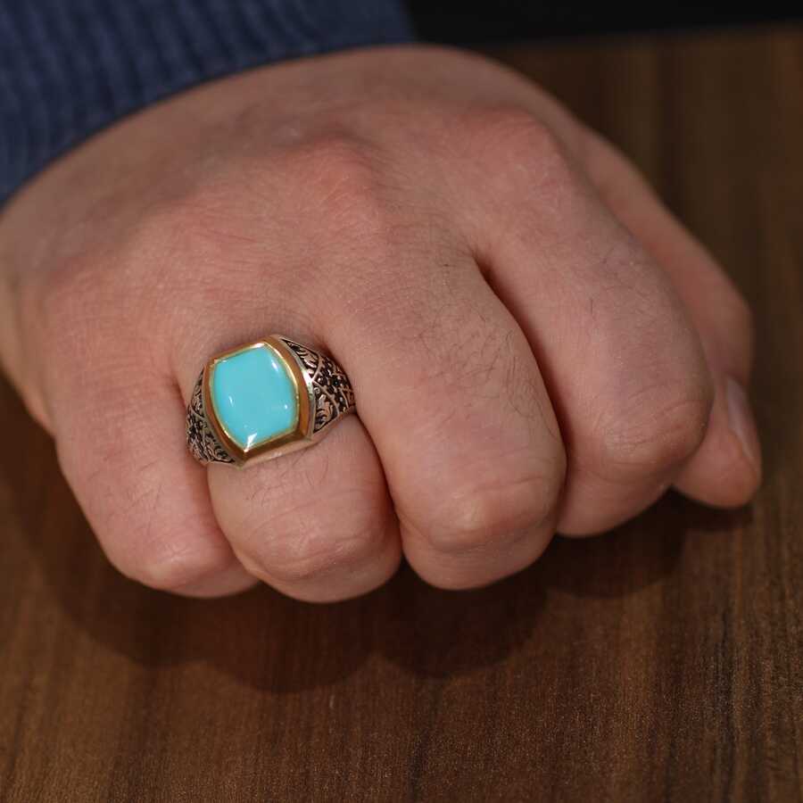 925 Ayar Gümüş Açık Mavi Mineli Erkek Yüzük