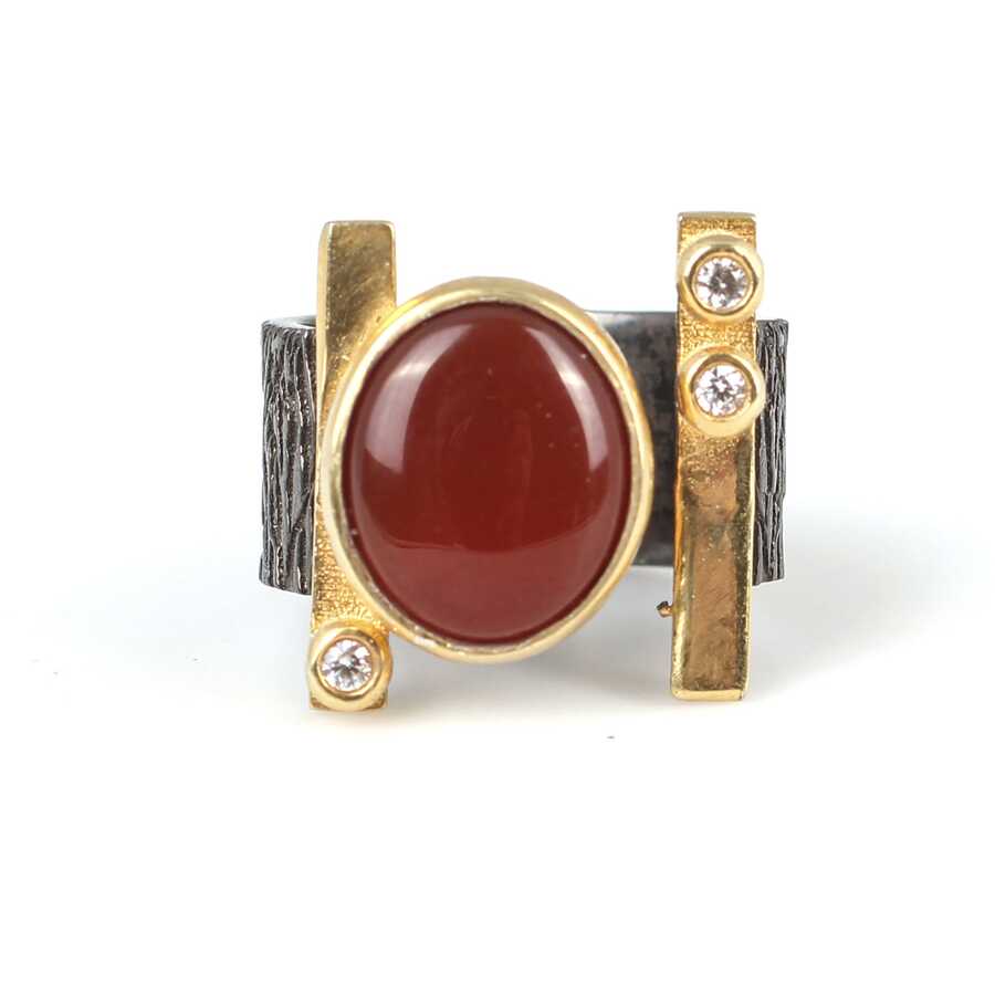 Yüzük 925 ayar gümüşten üretilmiştir. Ağaç kabuğu desenli yüzük 0,9 cm'ye 1,2 cm boyutlarındadır. Yüzüğün önü açık ve bir tarafında 2 adet zirkon diğer tarafında akik taş eklenmiştir. Resimdeki yüzük 11 ölçüdür, ancak tüm ölçüler yapılabilmektedir. Ağırlığı 8,88 gramdır.