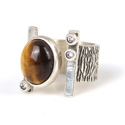 Yüzük 925 ayar gümüşten üretilmiştir. Ağaç kabuğu desenli yüzük 0,9 cm'ye 1,2 cm boyutlarındadır. Yüzüğün önü açık ve bir tarafında 2 adet zirkon diğer tarafında kaplangözü taş eklenmiştir. Resimdeki yüzük 11 ölçüdür, ancak tüm ölçüler yapılabilmektedir. Ağırlığı 9,59 gramdır.