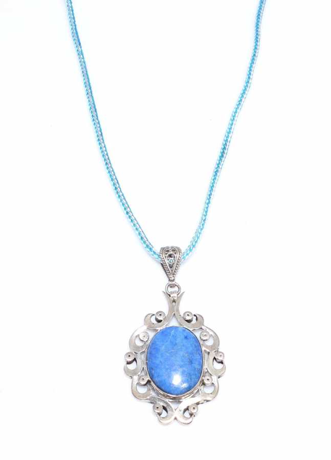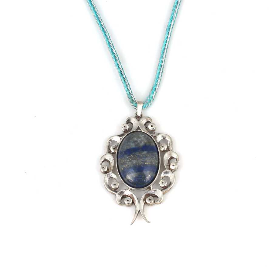 Gümüş kolye 925 ayar gümüşten yapılmıştır. Oval ajurlu kolye 5,3 cm'ye 3,3 cm boyutlarında ve 54 cm uzunluğundadır. Kolye lapis taşlıdır. Ağırlığı 15,3 gramdır.