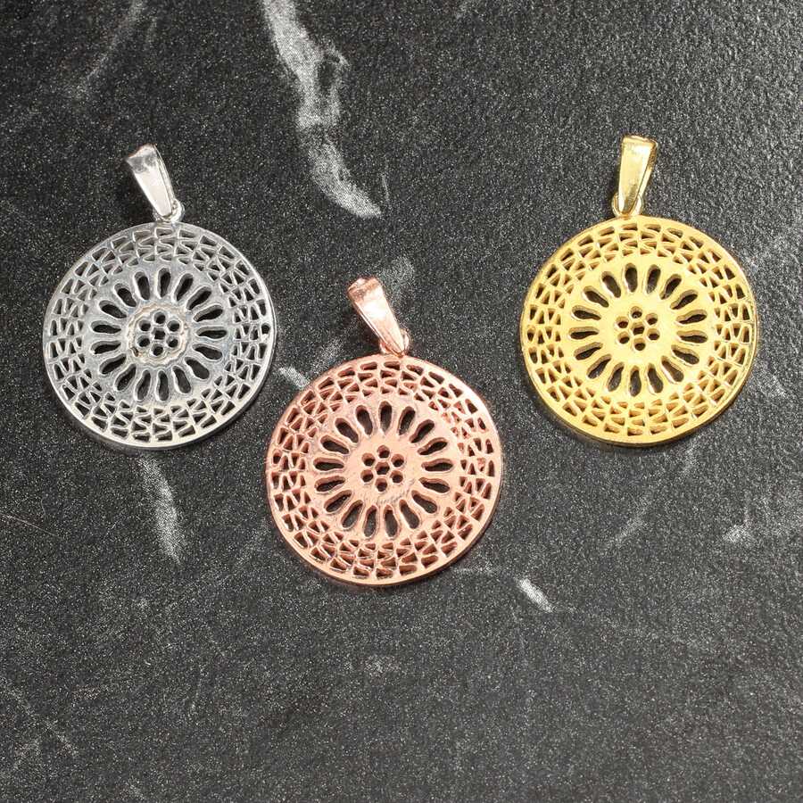 925 ayar gümüştür 20 x 26 mm ebadında ajurlu model kolye ucu, sarı beyaz pembe renkleri mevcuttur. Gramı: 2,58 gr