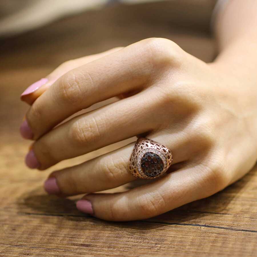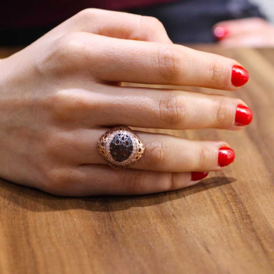 925 Ayar Gümüş Ajurlu Taşlı Yüzük