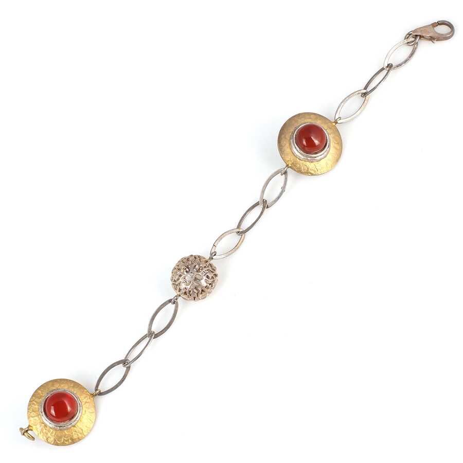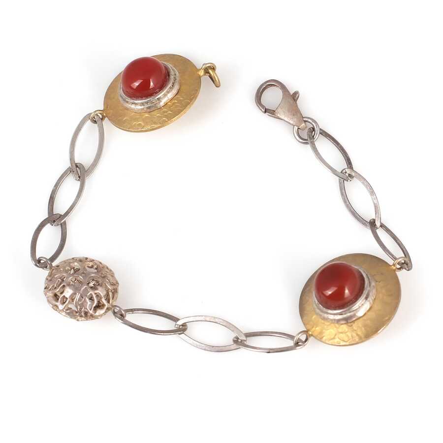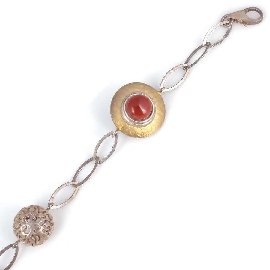 925 Ayar gümüştür. 20 cm boyunda, Akik taşlı Badem zincirli bir adet ajurlu top'tan mamul bilekliktir. Gramı: 17,84 gr