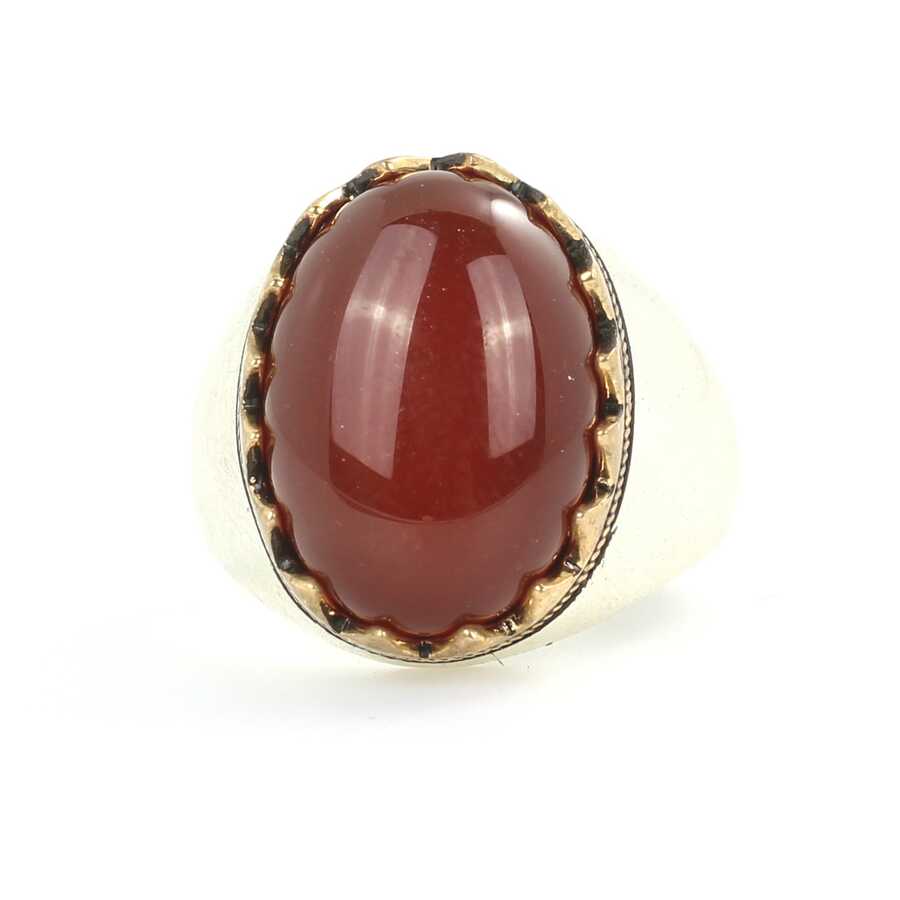 Yüzük 925 ayar gümüşten üretilmiştir. Taşlı yüzük 1,7 cm'ye 1,2 cm boyutlarındadır. Resimdeki yüzük 21 ölçüdür, ancak tüm ölçüler özel olarak yapılabilmektedir. Yüzük akik renk taşlıdır. Ağırlığı 12,7 gramdır.