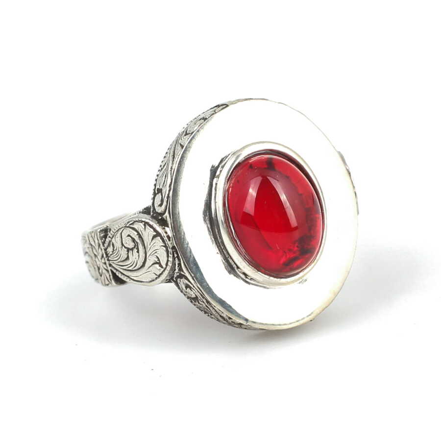 Yüzük 925 ayar gümüşten üretilmiştir. Taşlı yüzüğün üst kısmı 1,9 cm'ye 1,7 cm boyutlarındadır. Yüzüğün taş kısmı 1,2 cm'ye 1,0 cm boyutlarındadır. Resimdeki yüzük 15 ölçüdür, ancak tüm ölçüler özel olarak yapılabilmektedir. Yüzük akik taşlıdır. Gümüş erkek yüzüğü 10,8 gramdır