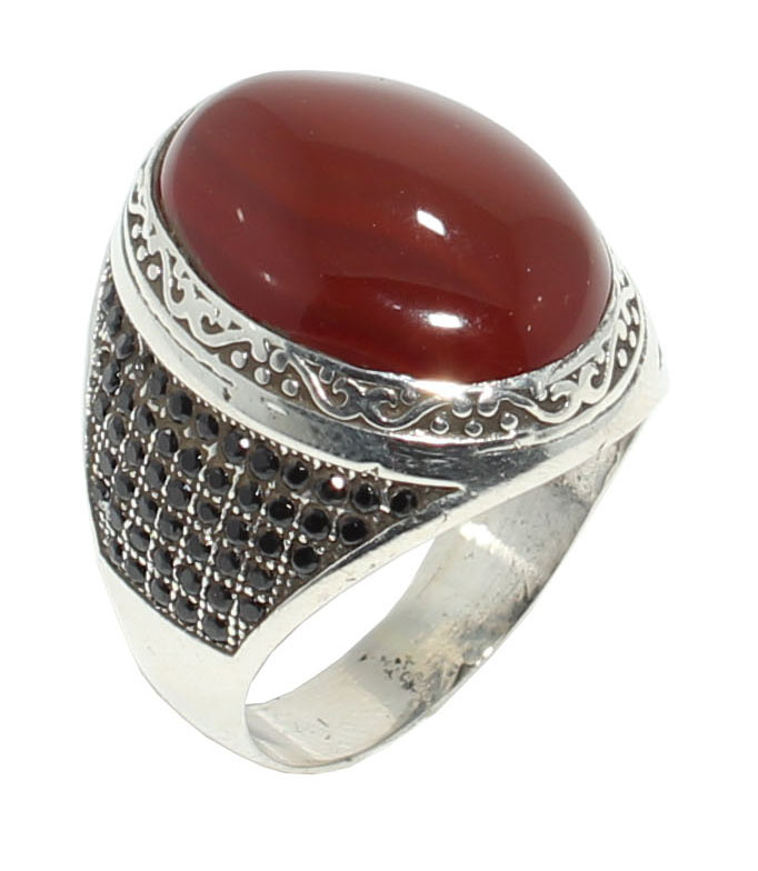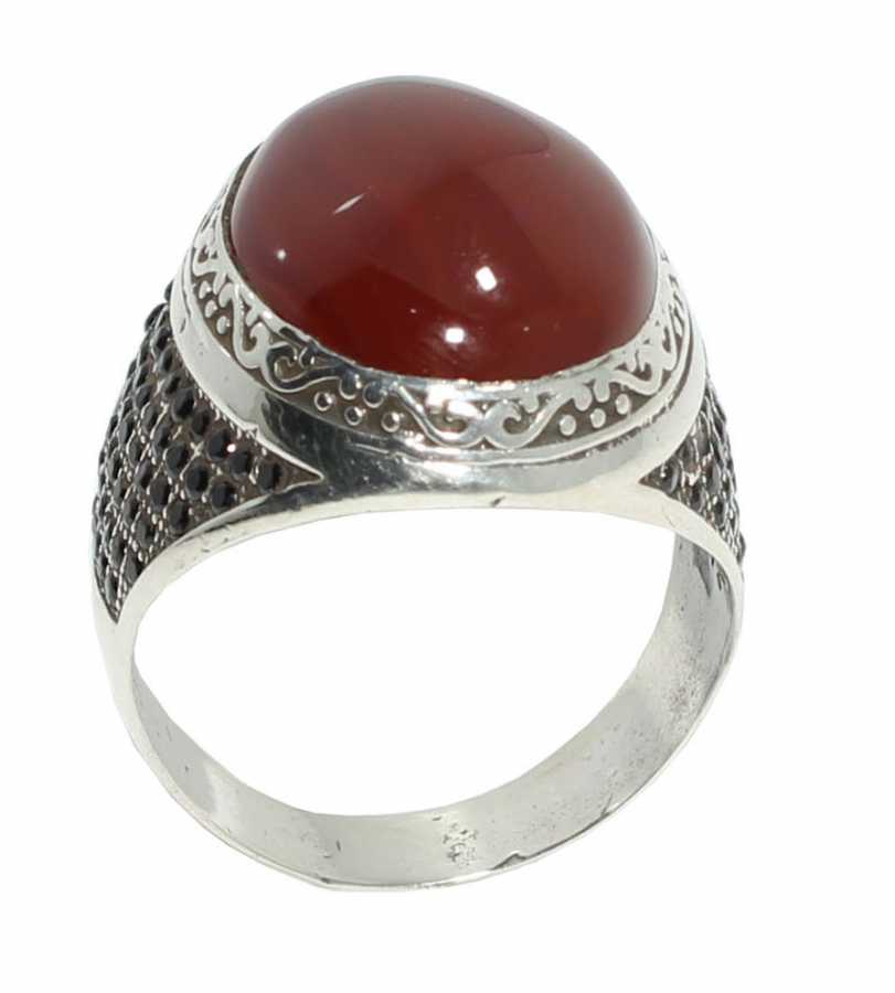 925 Ayar Gümüş Akik ve Siyah Zirkon Taşlı Erkek Yüzük