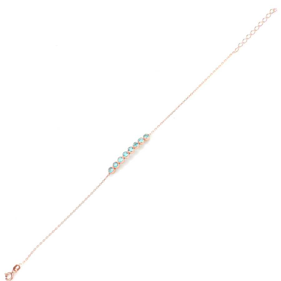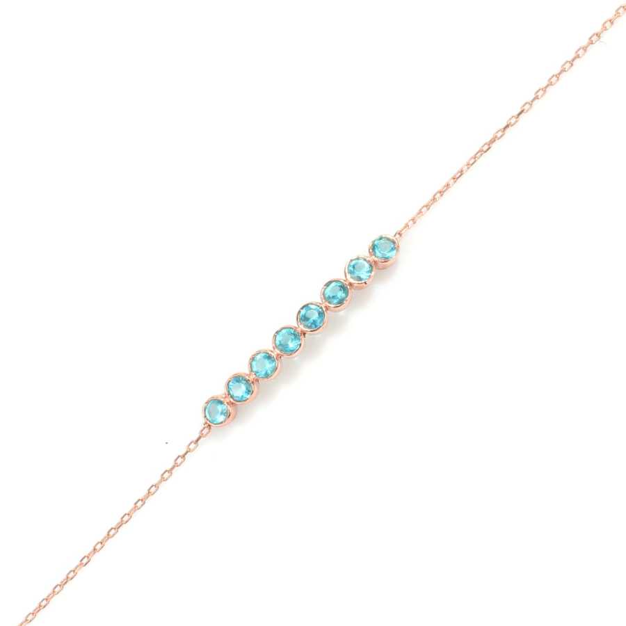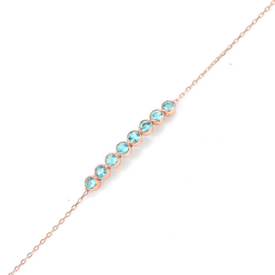 Bileklik 925 ayar gümüşten imal edilmiştir. Suyolu bileklik 22 cm uzunluğundadır. Bileklik akuamarin renk zirkon taşlıdır. Gümüş bileklik 1,93 gram ağırlığındadır.