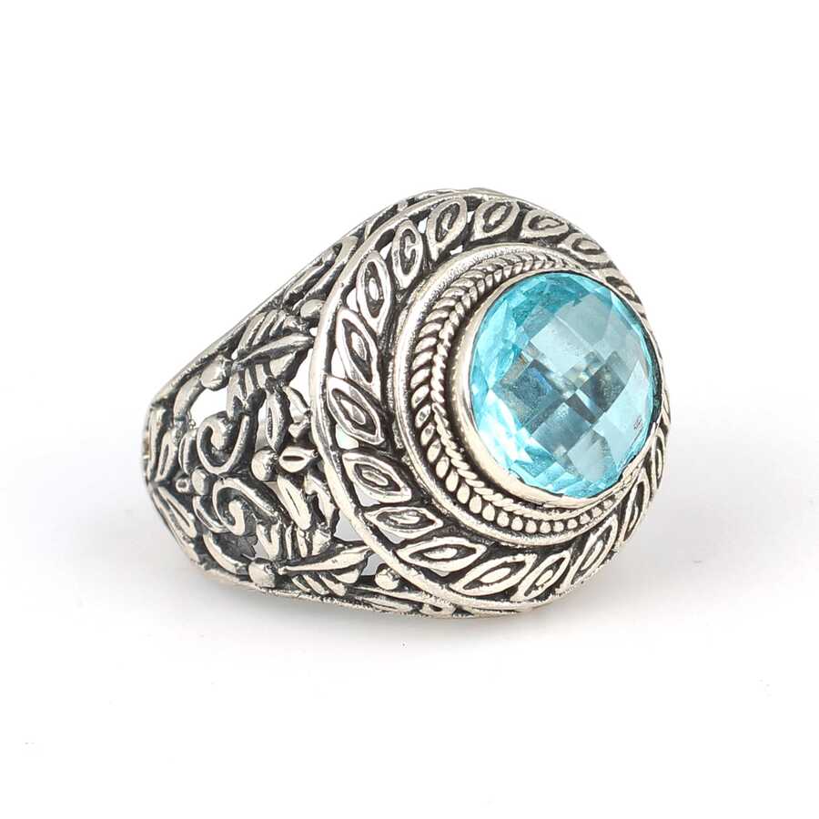 925 Ayar Gümüş Akuamarin Taşlı Ajurlu Yapraklı Yüzük