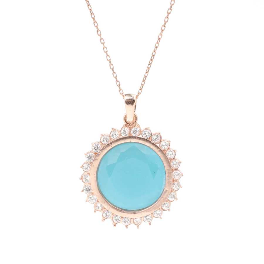 925 Ayar Gümüş Akuamarin Taşlı Güneş Kolye