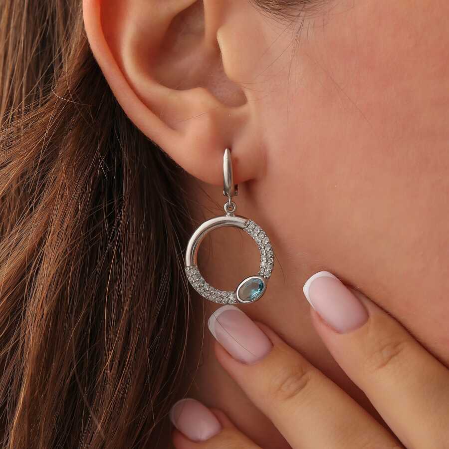 925 Ayar Gümüş Akuamarin & Zirkon Taşlı Küpe