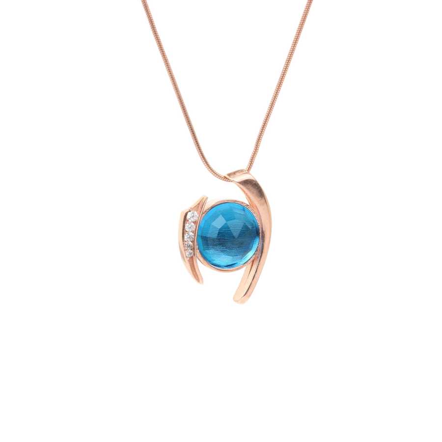 925 Ayar Gümüş Akuamarin & Zirkon Taşlı Trend Kolye