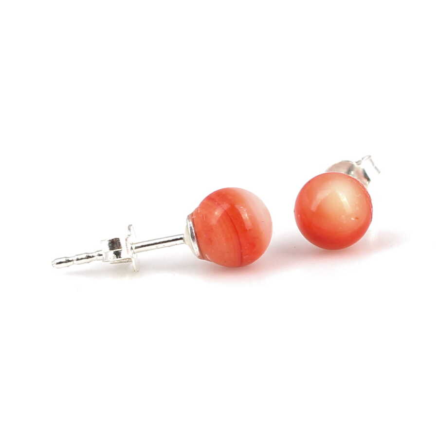 925 Ayar Gümüş Alacalı Mercan Taşlı Minik Top Küpe