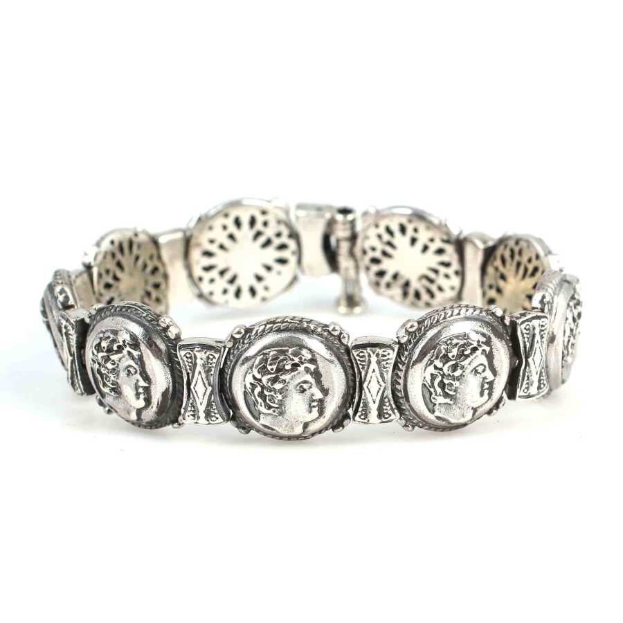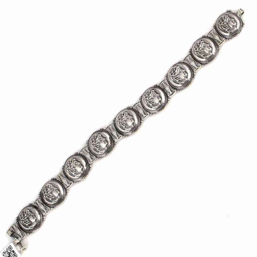Bileklik 925 ayar gümüşten imal edilmiştir. Antik Bizans döneminden esinlenilen bileklik 17 cm uzunluğundadır. Bileklik üzerinde Alexander kafası vardır. Bileklik taşsızdır. Gümüş bileklik 36,31 gram ağırlığındadır.