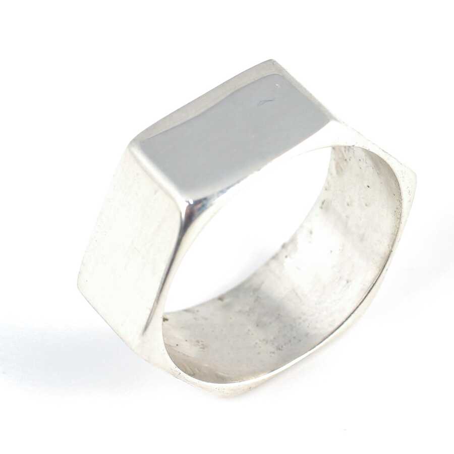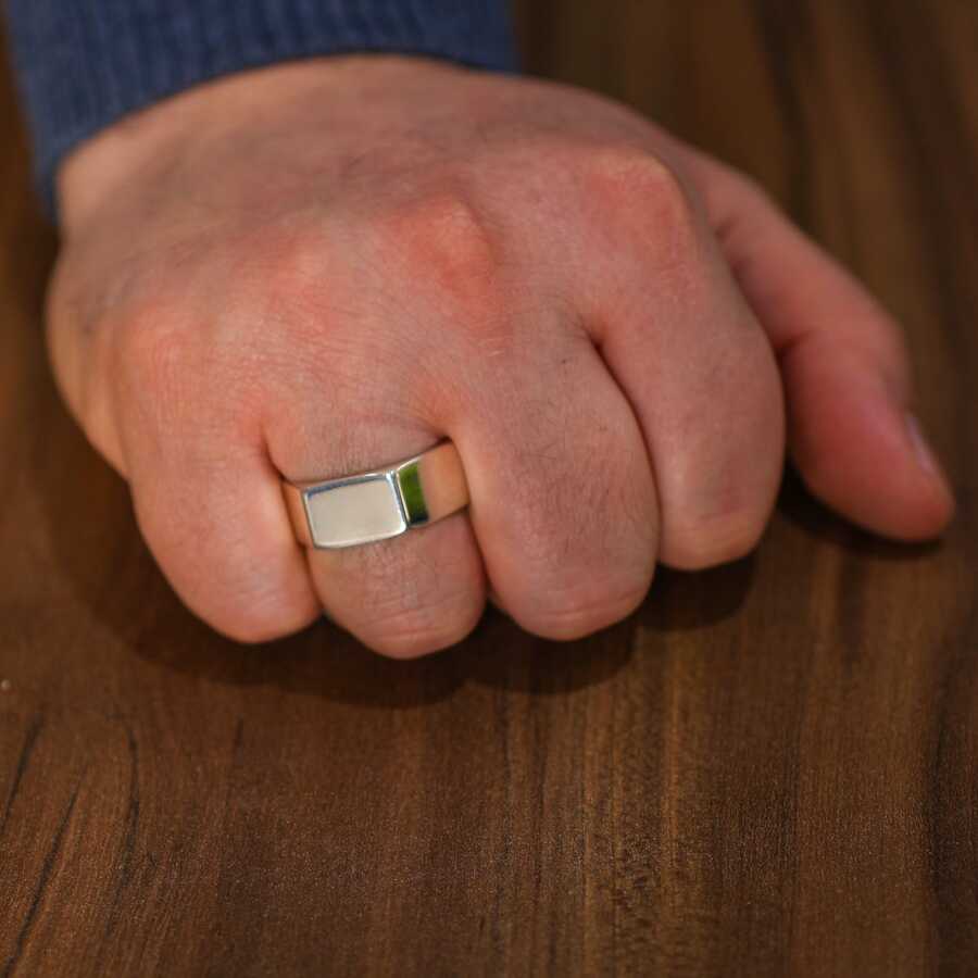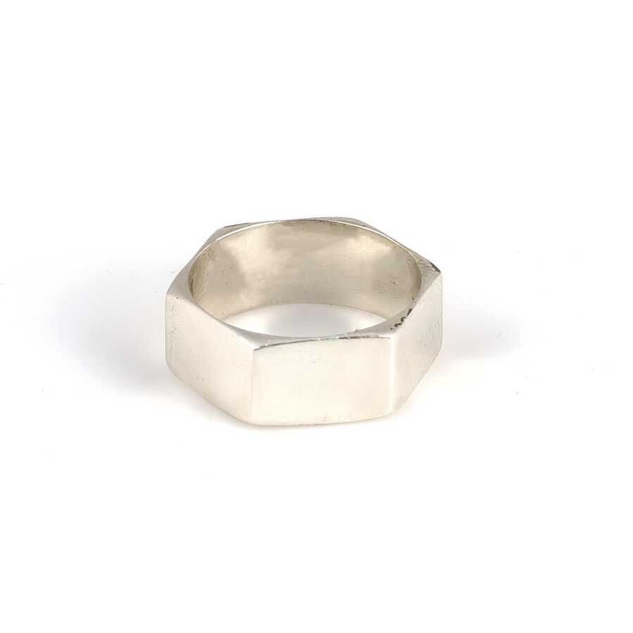 Yüzük 925 ayar gümüşten üretilmiştir. Düz cilalı altıgen şeklindeki yüzük 0,9 cm boyutlarındadır. Resimdeki yüzük 27 ölçüdür, ancak tüm ölçüler yapılabilmektedir. Yüzük taşsızdır. Ağırlığı 8,48 gramdır.
