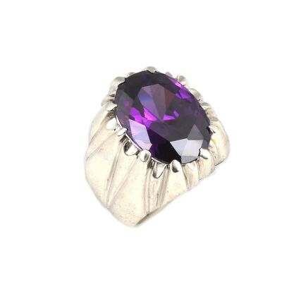 925 Ayar Gümüş Ametist Renk Taşlı Düz Cilalı Erkek Yüzük