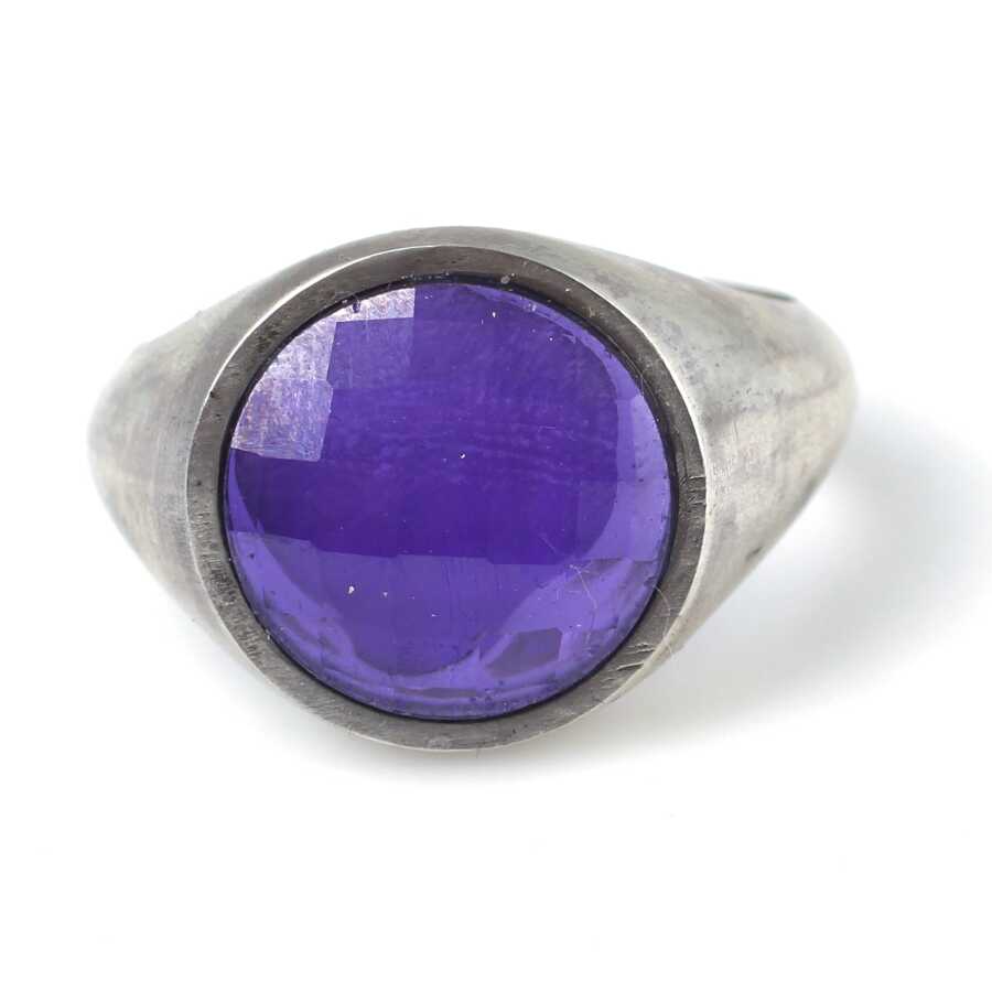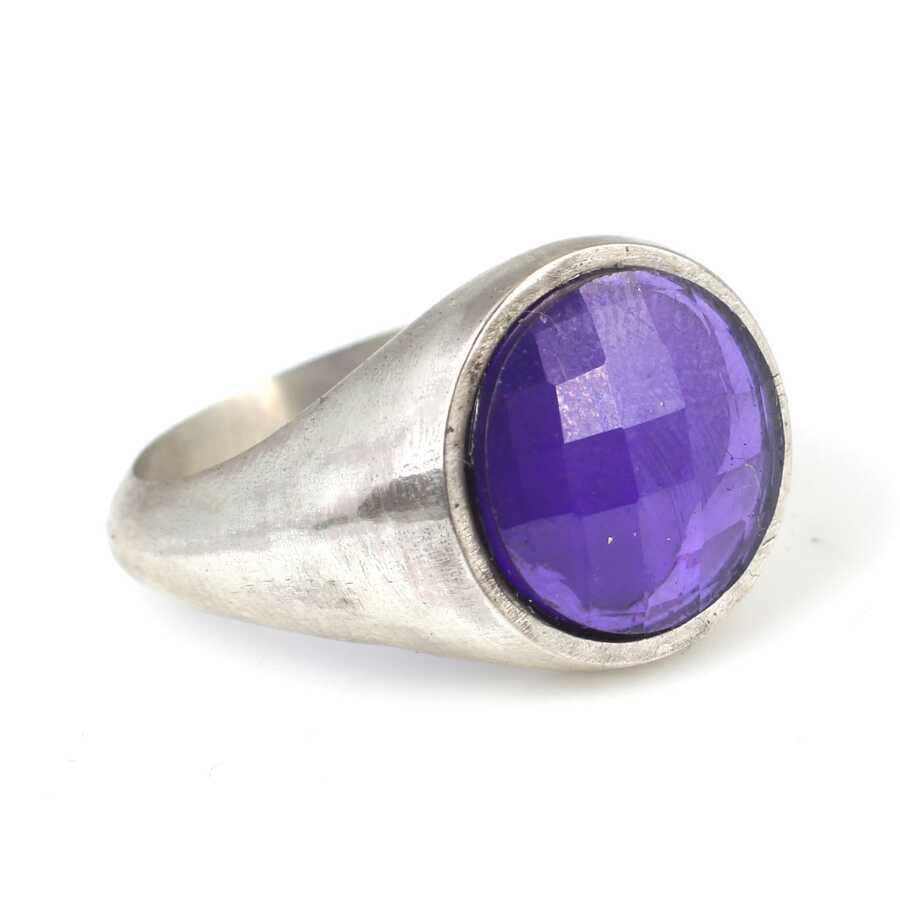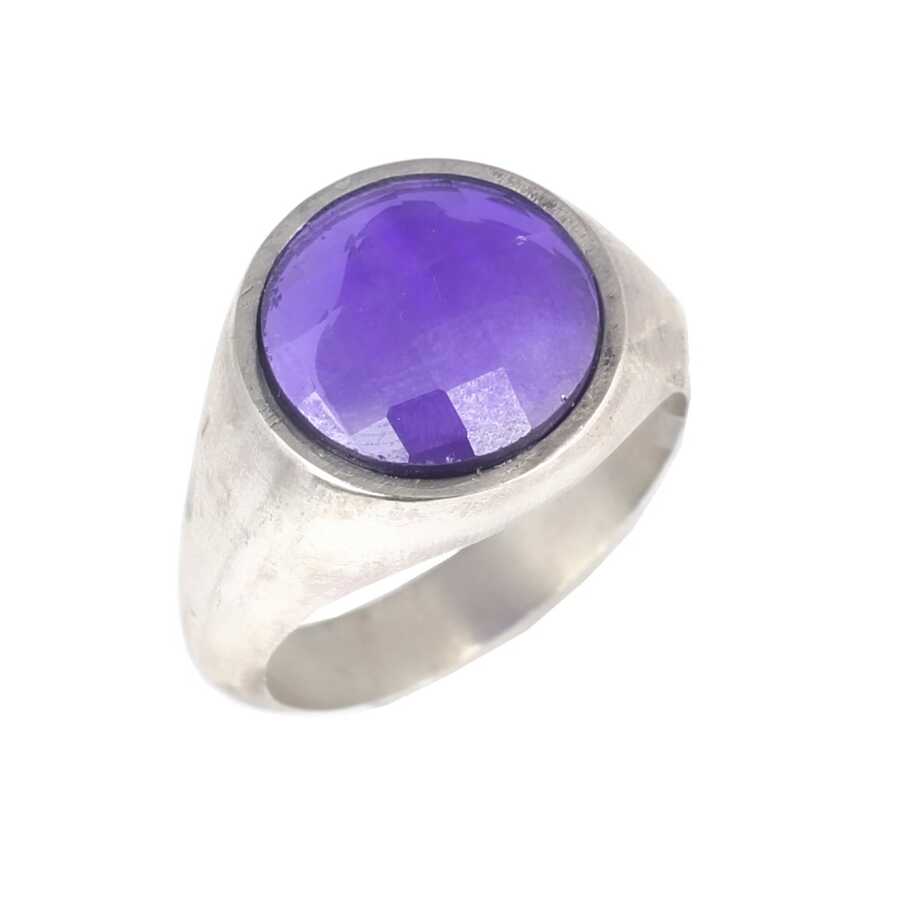 925 Ayar Gümüş Ametist Renk Taşlı Düz Erkek Yüzüğü