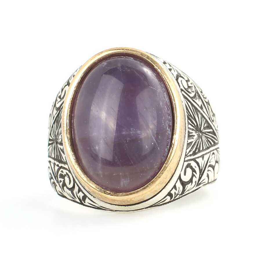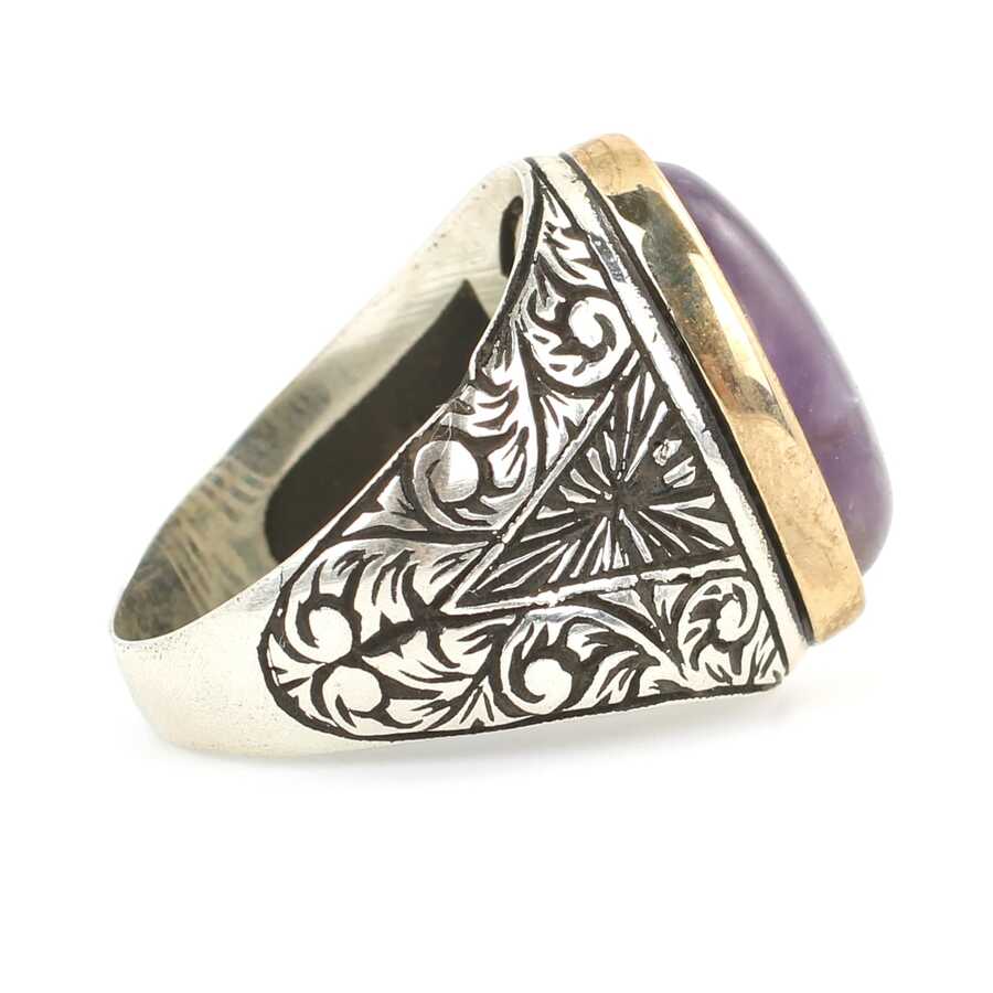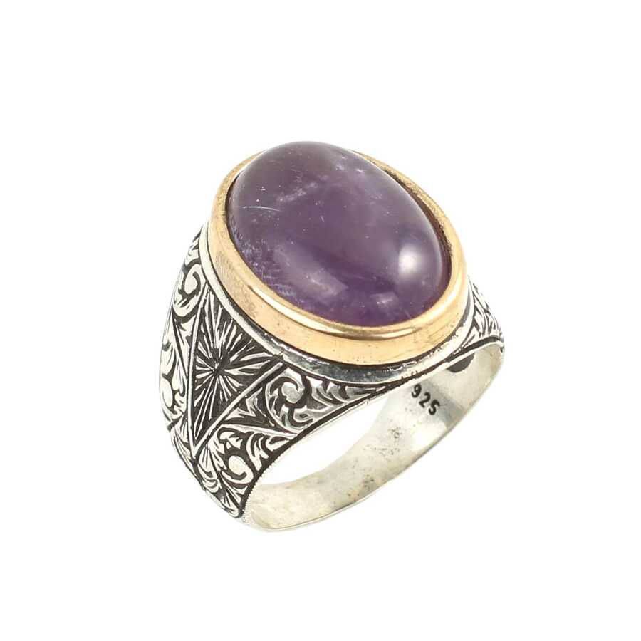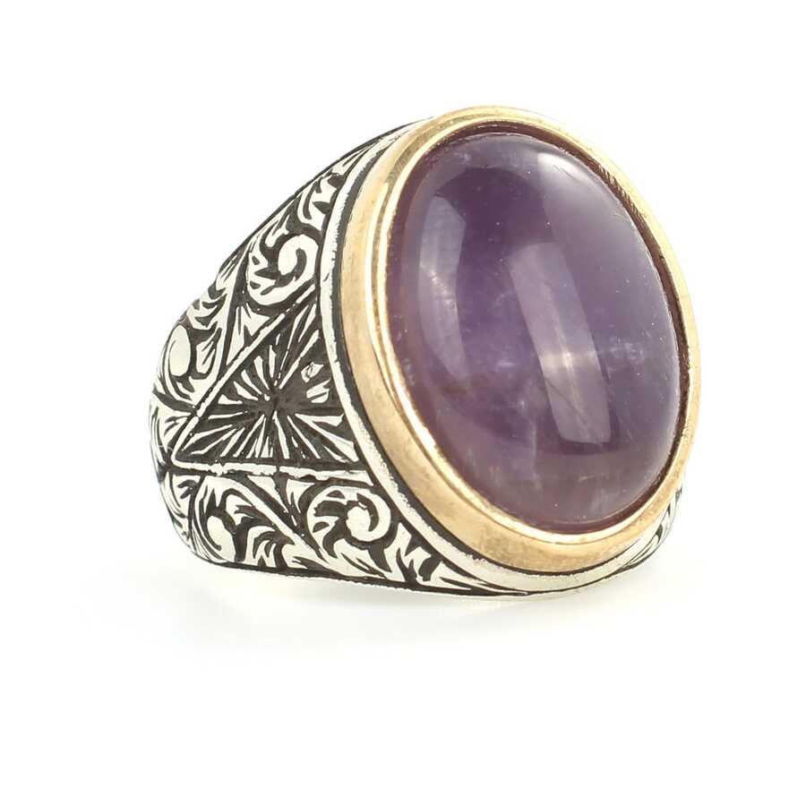 925 Ayar Gümüş Ametist Taşı Erkek Yüzüğü