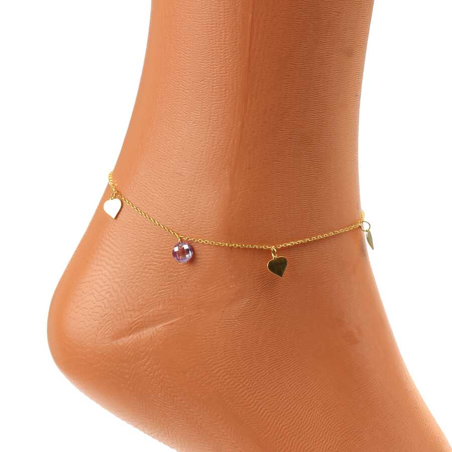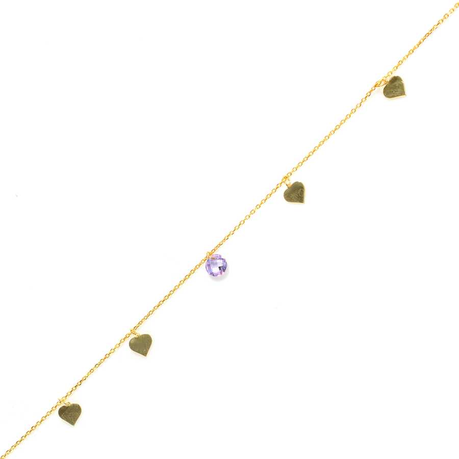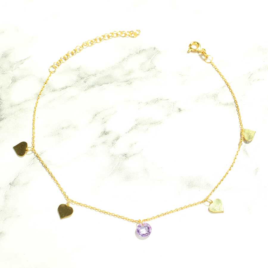 925 ayar gümüştür. Ametist taşlı ve 4 adet kalp şeklinden oluşmaktadır. Halhal Uzunluğu: 20,5 cm + 4 cm uzatma zinciri vardır. Sarı renktedir. Gramı: 1,77 gr925 Ayar Gümüş Ametist Taşlı Kalp Modeli Halhal