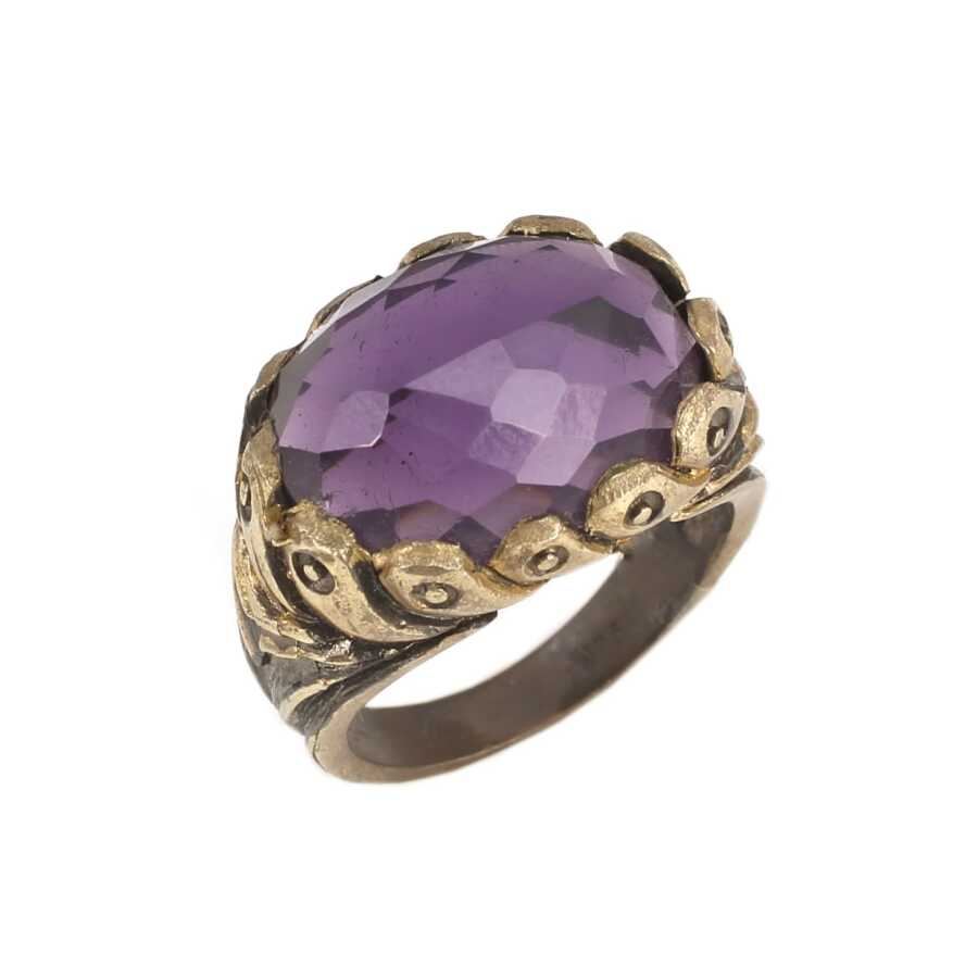 925 Ayar Gümüş Mor Oval Ametist Taşlı Yüzük