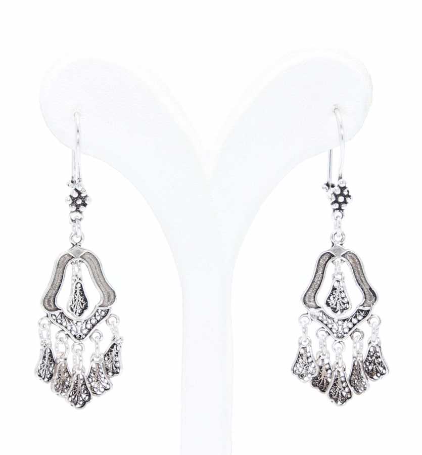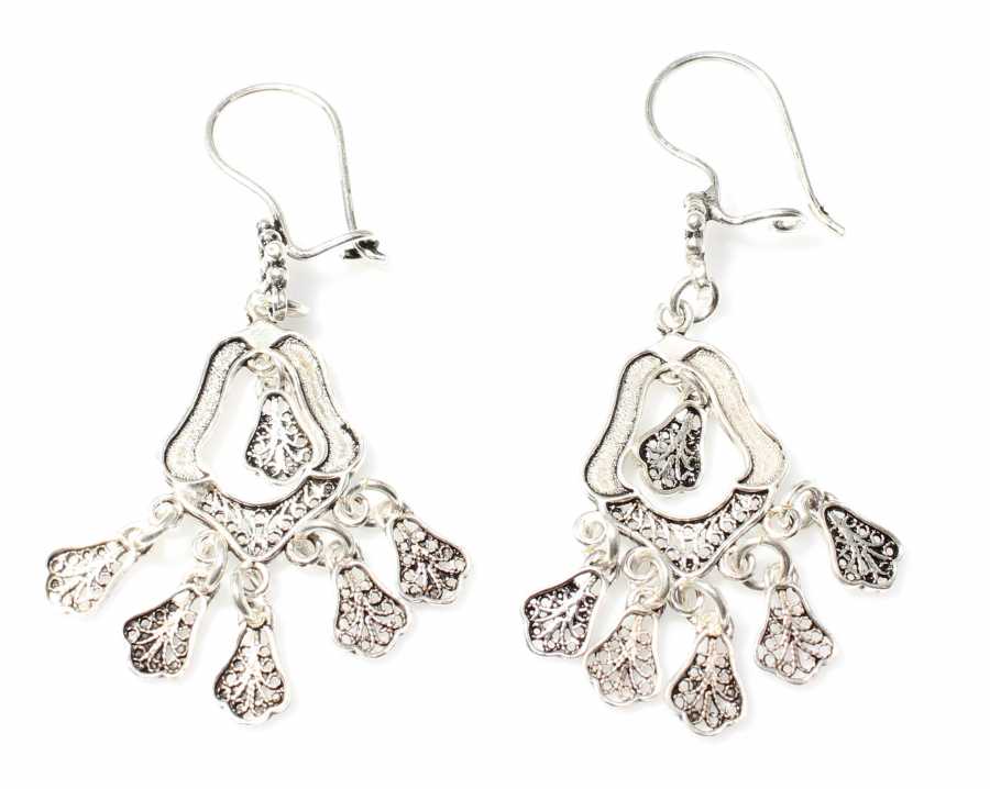 Gümüş telkari küpe 925 ayar gümüşten yapılmıştır. Ampul şeklindeki telkari küpe 1,5 cm eninde ve 5,5 cm boyutlarındadır. Telkari küpe taşsızdır. Küpenin altından parçalar sallanmaktadır. Ağırlığı 5,12 gramdır.