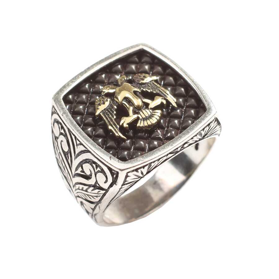925 Ayar Gümüş Anadolu Kartalı Kolları İşlemeli Erkek Yüzük