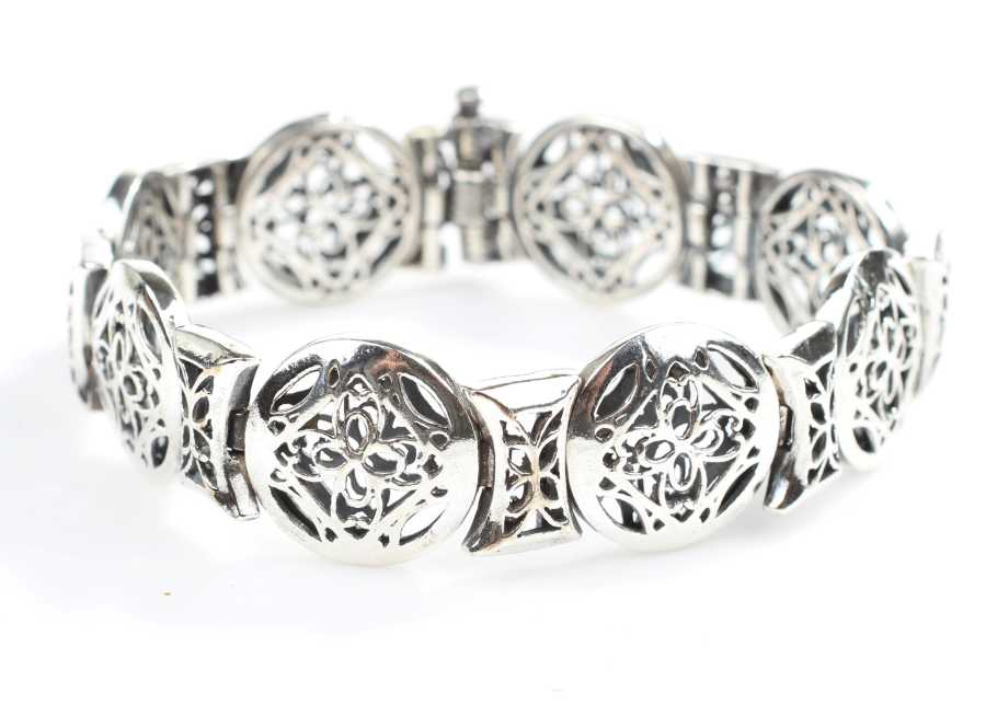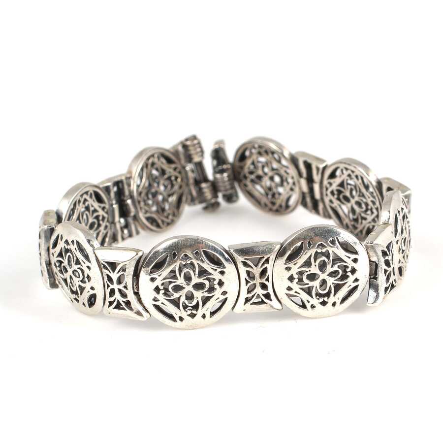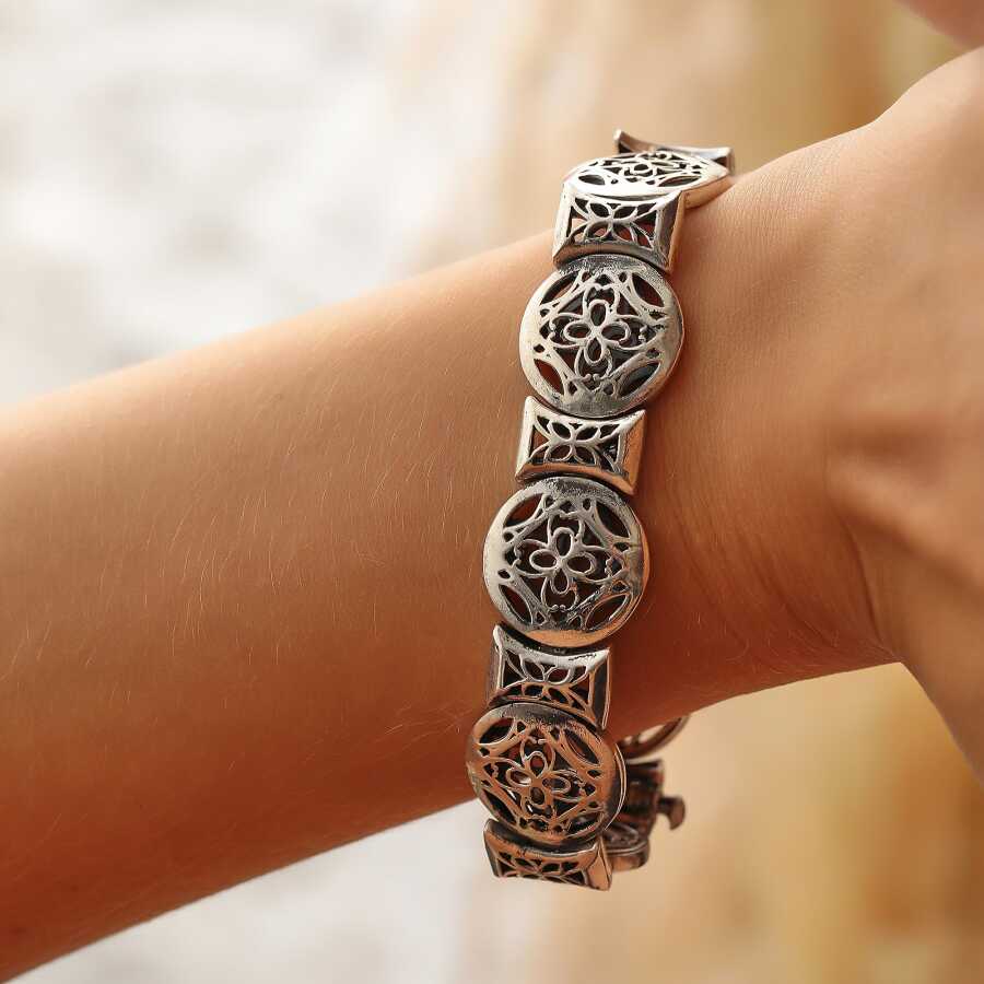 Bileklik 925 ayar gümüşten imal edilmiştir. Antik Bizans döneminden esinlenilen bileklik 19 cm uzunluğundadır. Bileklik taşsızdır. Gümüş bileklik 35,4 gram ağırlığındadır.