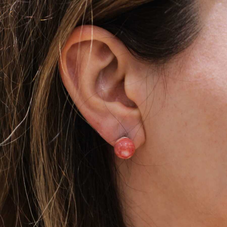 Gümüş küpe 925 ayar gümüşten yapılmıştır. Top dalgalı renkli mercan taşlı küpe 1,0 cm boyutundadır. Küpe mercan taşlıdır. Mercan taş 1 cm boyutlarındadır. Ağırlığı 3,48 gramdır.