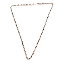 925 ayar Gümüştür. Arnavut zinciri model. 60 cm uzunluğunda, 3,5 mm enindedir. Gramı 28,78 gr
