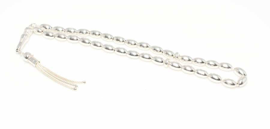 925 Ayar Gümüş Arpa Kesim Parlak Düz Tesbih